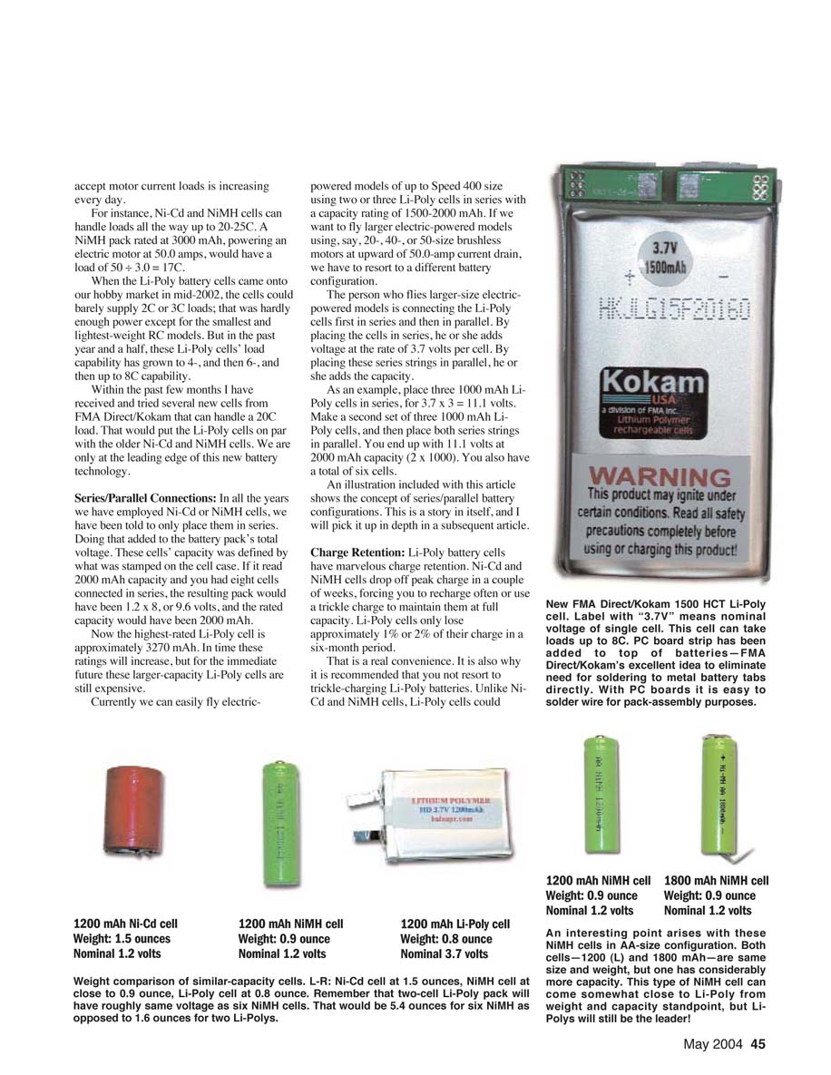 FMA/Kokam Li-Poly batteries)