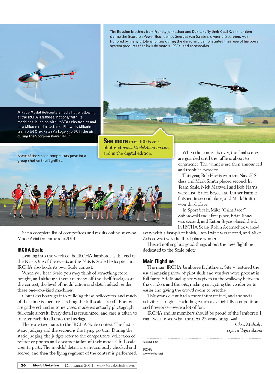 An interesting note is that AMA’s National Model Aviation Museum holds documentation of the history of IRCHA, courtesy of Mark Wilson, who had collected the information throughout the last 25 years.