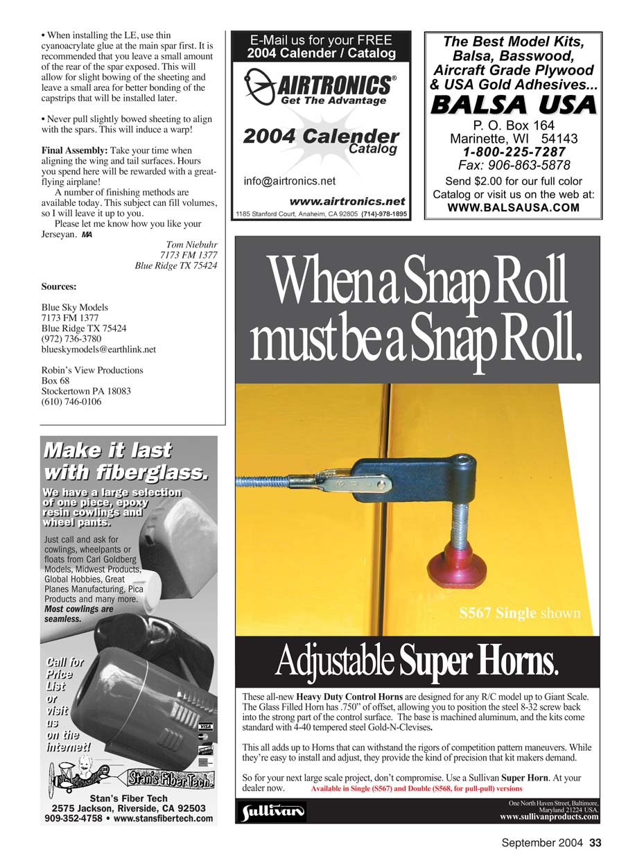 straight wing. Laser-cut ribs are available from Blue Sky Models,
