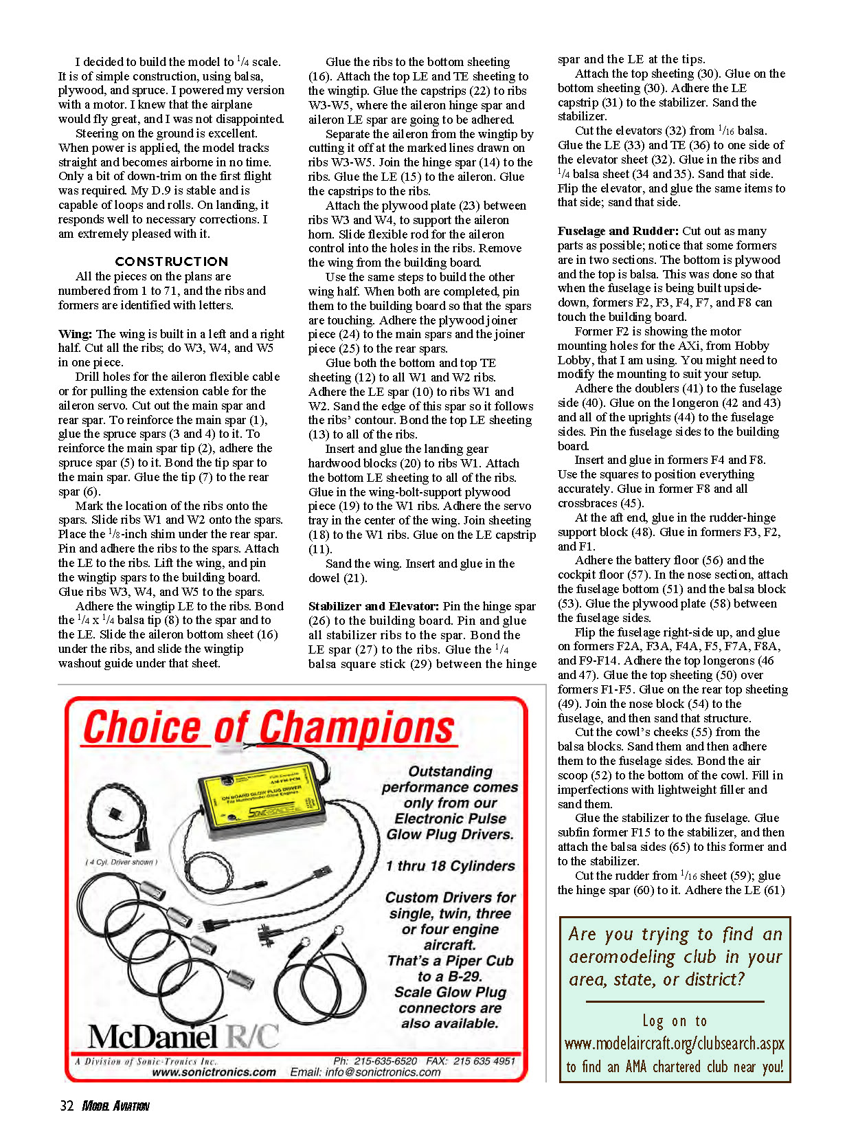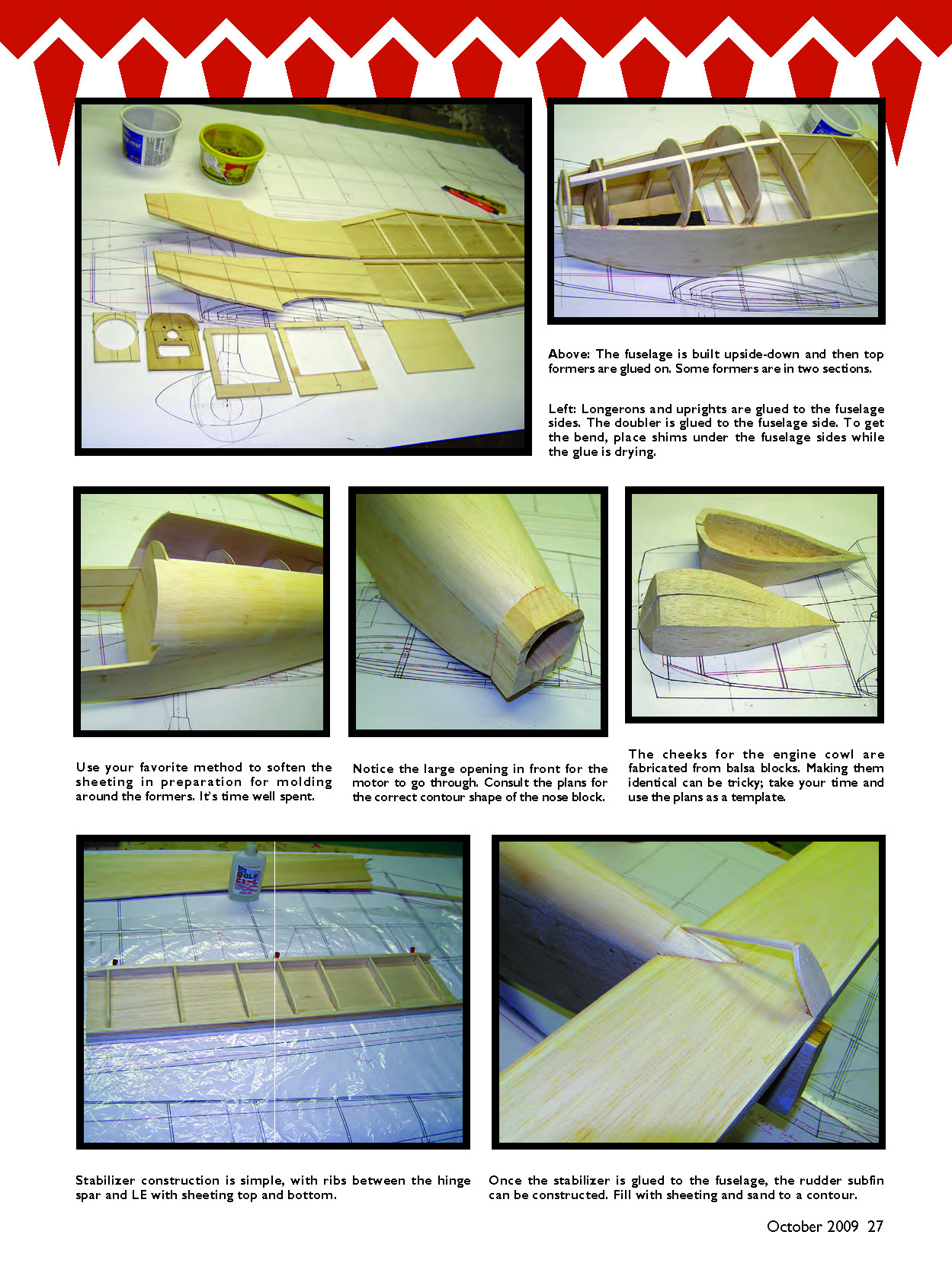 Right: The ribs for the left half of the wing are glued to the spars. Drill holes for