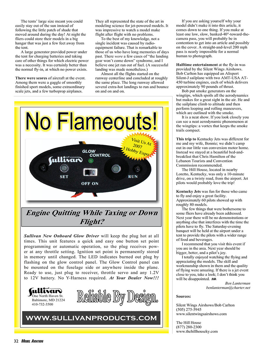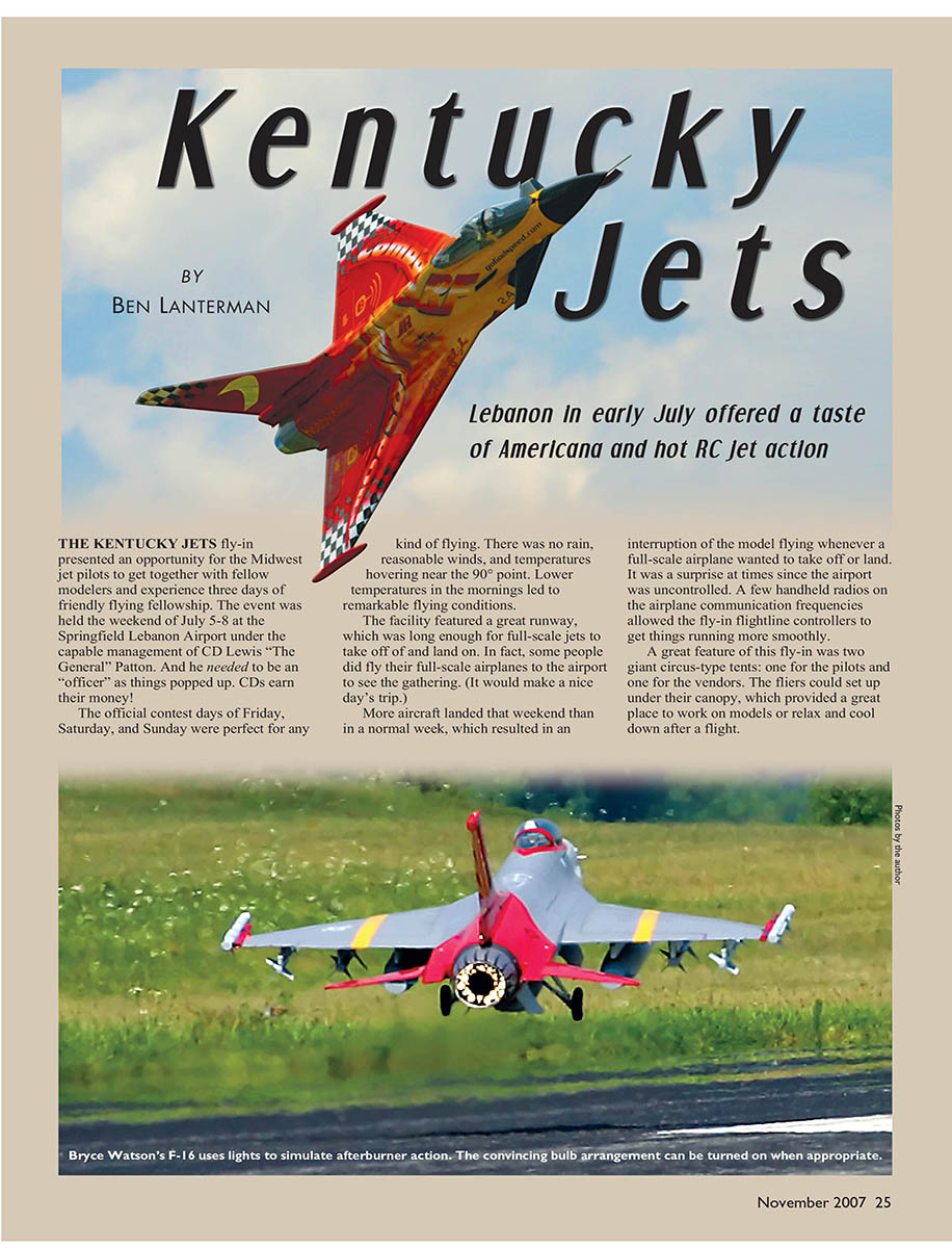 Bryce Watson’s F-16 uses lights to simulate afterburner action. The convincing bulb arrangement can be turned on when appropriate.