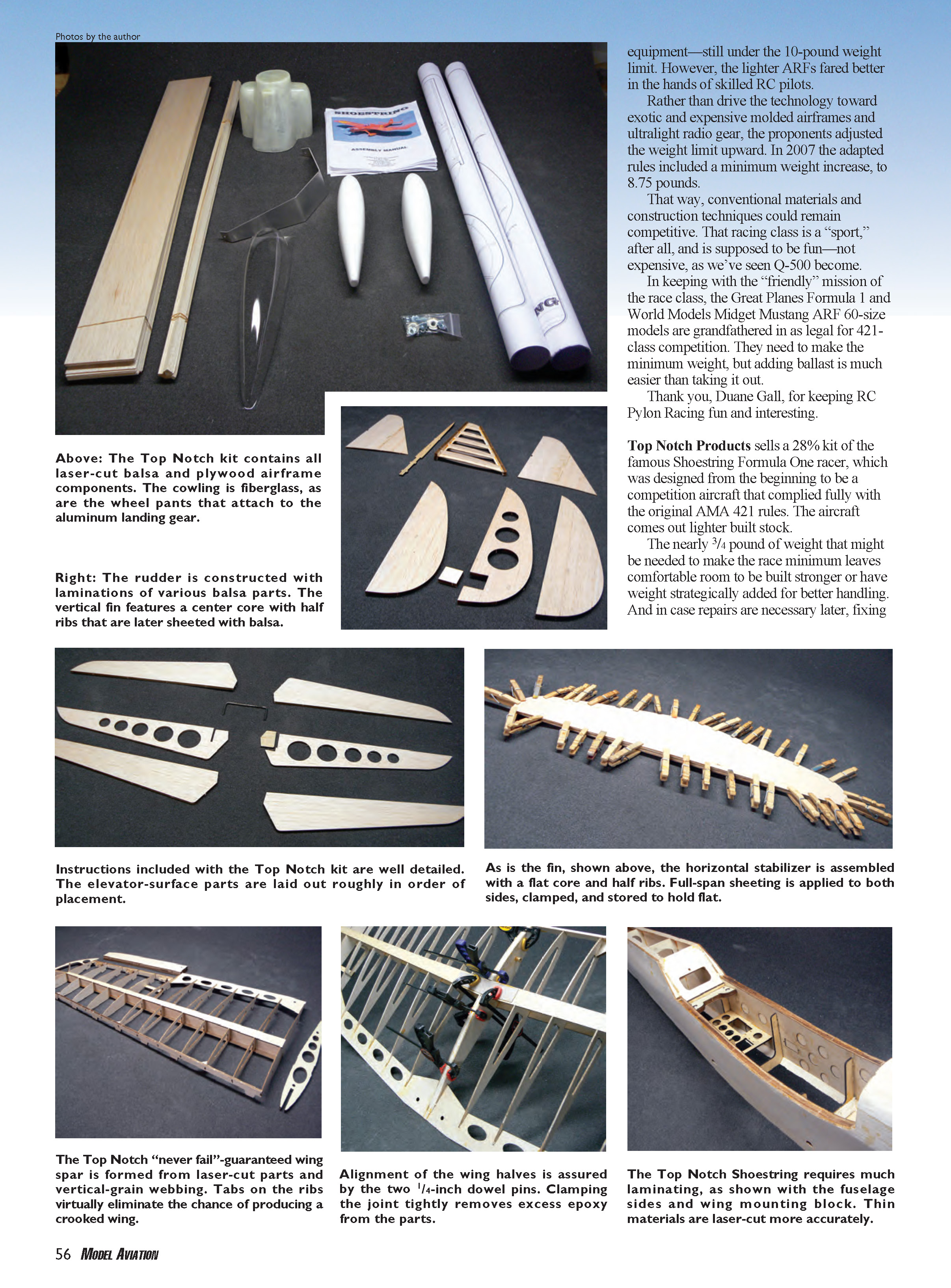 laminations of various balsa parts. The
