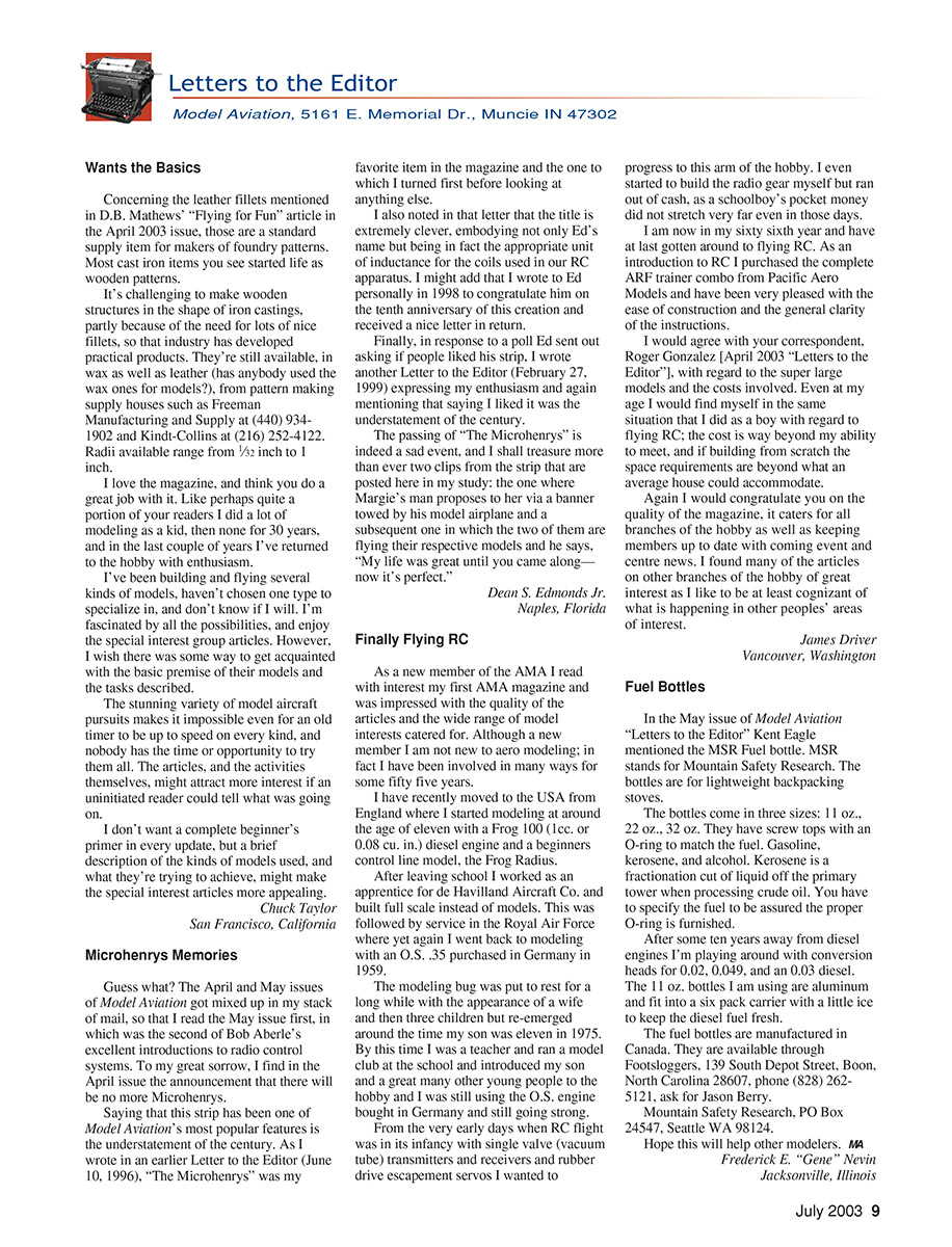 Model Aviation, 5161 E. Memorial Dr., Muncie IN 47302