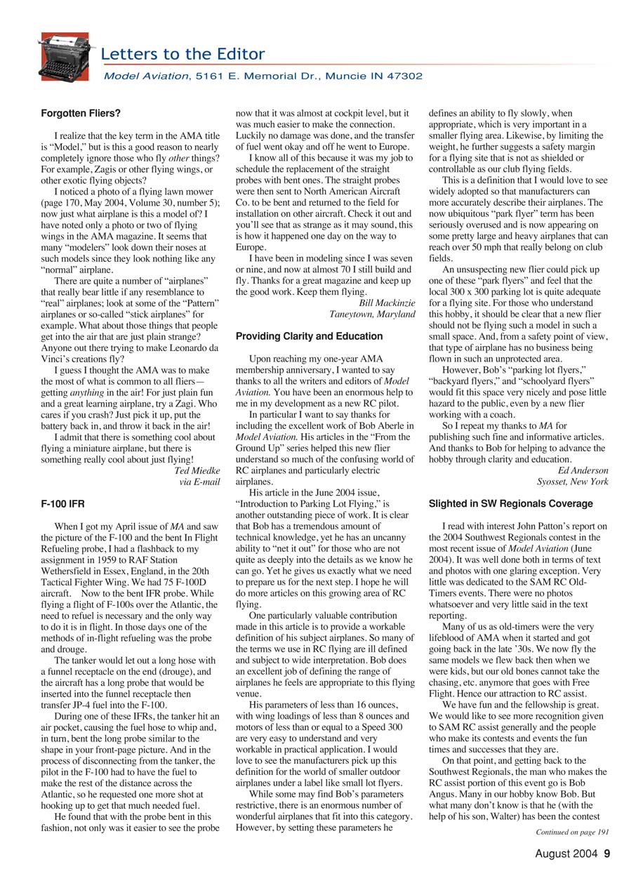 Model Aviation, 5161 E. Memorial Dr., Muncie IN 47302