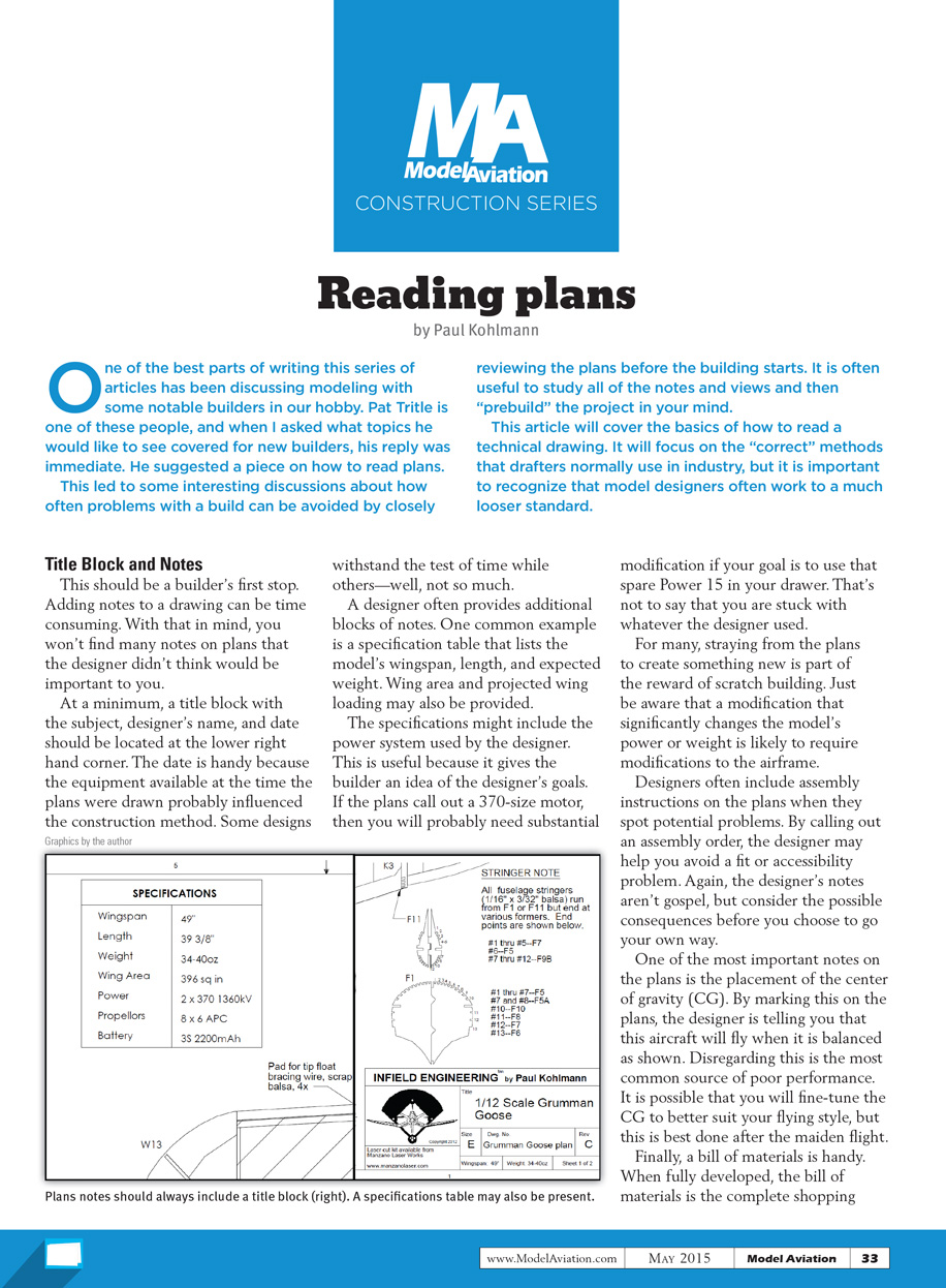 One of the best parts of writing this series of articles has been discussing modeling with some notable builders in our hobby. Pat Tritle is one of these people, and when I asked what topics he would like to see covered for new builders, his reply was immediate. He suggested a piece on how to read plans.