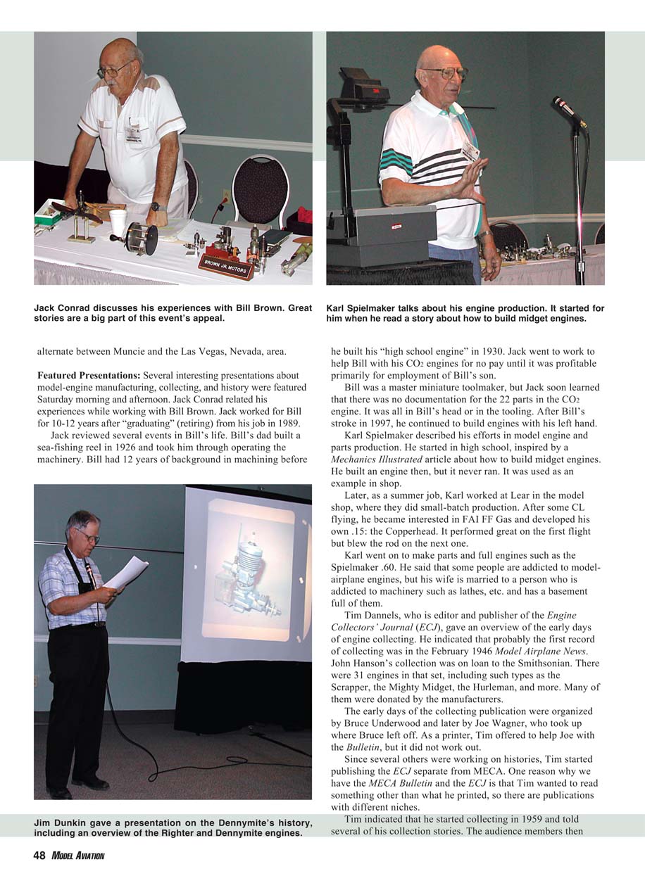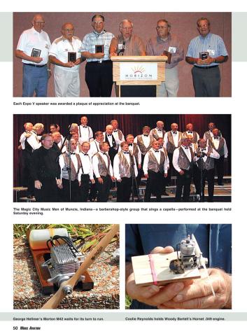 George Hellmer’s Morton M42 waits for its turn to run. Coolie Reynolds holds Woody Bartelt’s Hornet .049 engine.