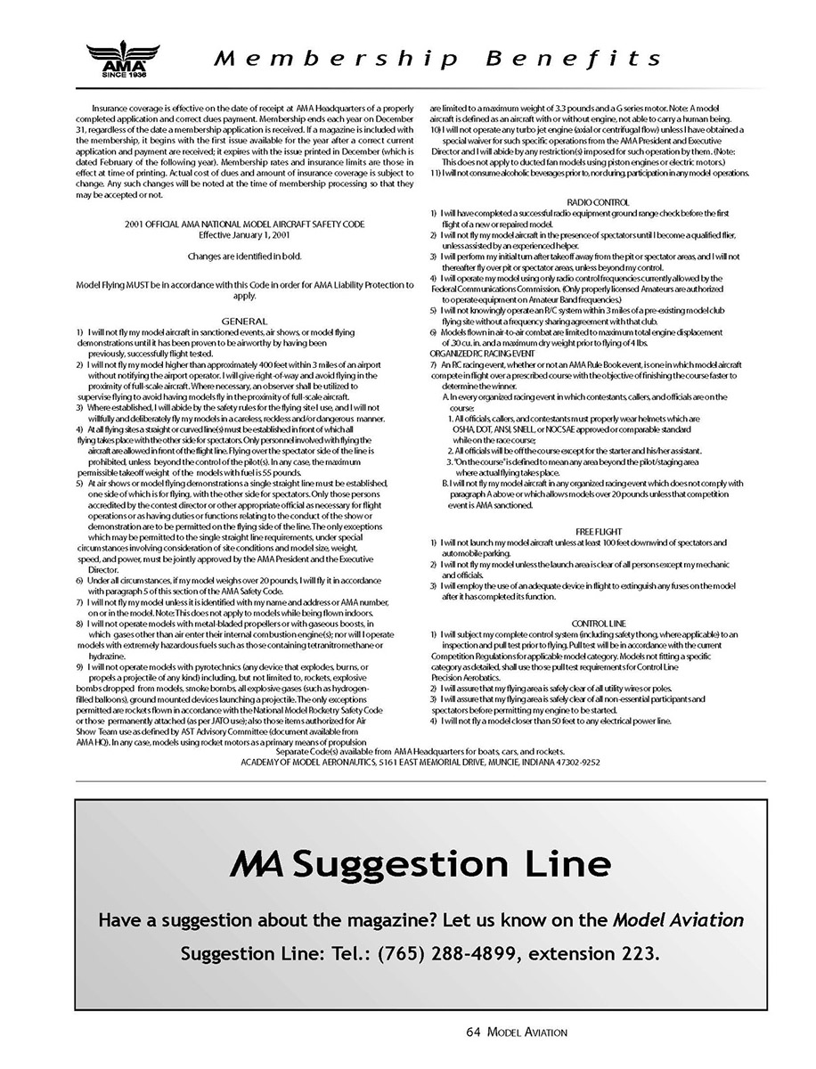 2001 OFFICIAL AMA NATIONAL MODEL AIRCRAFT SAFETY CODE