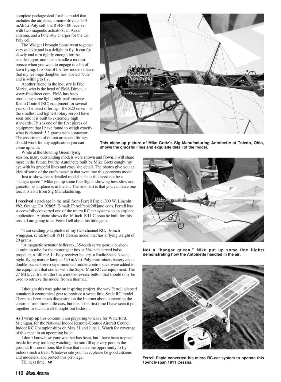 Michigan, for the National Indoor Remote-Control Aircraft Council
