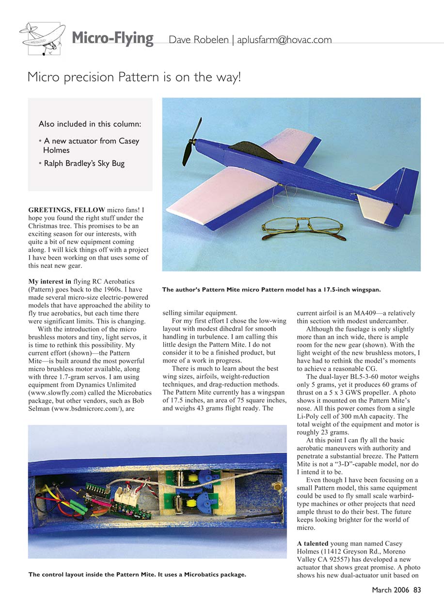 The author’s Pattern Mite micro Pattern model has a 17.5-inch wingspan.