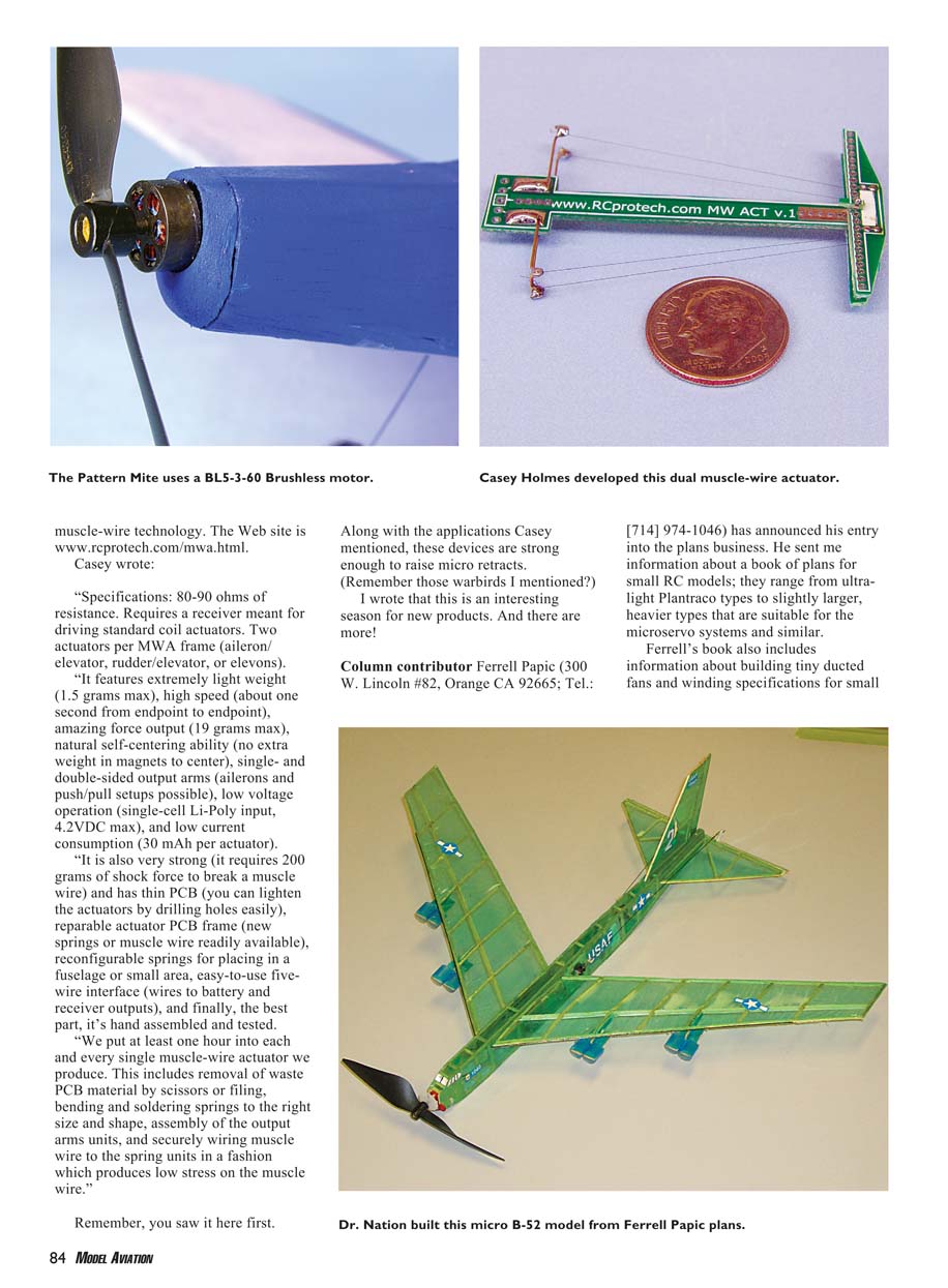 Dr. Nation built this micro B-52 model from Ferrell Papic plans.