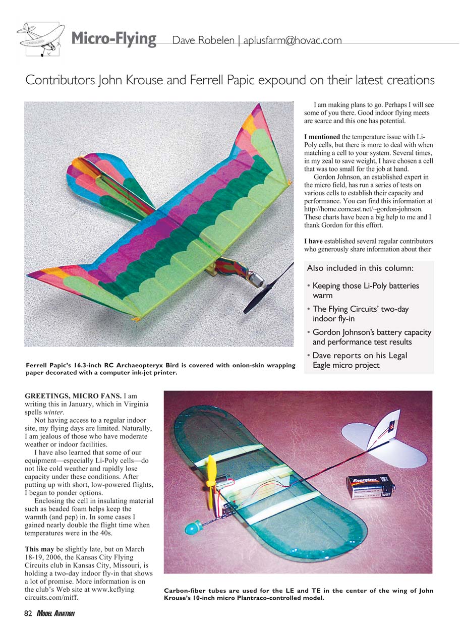 Ferrell Papic’s 16.3-inch RC Archaeopteryx Bird is covered with onion-skin wrapping Eagle micro project