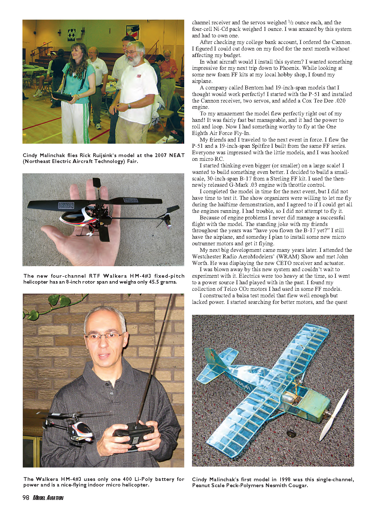 Cindy’s first RC aircraft was a 13-inchspan,