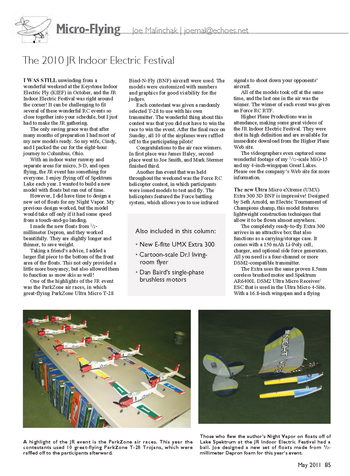 Joe Malinchak Micro-Flying | joemal@echoes.net