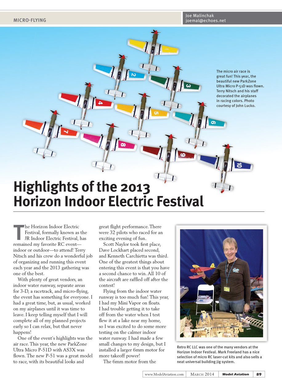 The Horizon event is also a great place to find good deals from the many vendors that attend. Retro RC LLC was one of the vendors present that manufactures some wonderful indoor RC kits. I was impressed with Retro RC’s products, and plan to review one of its kits in a future column. The company also had a neat, new building-jig system that should interest those of us who like to build models.