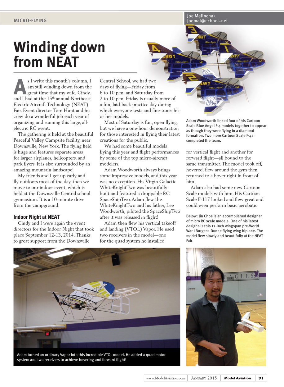 As I write this month’s column, I am still winding down from the great time that my wife, Cindy, and I had at the 15th annual Northeast Electric Aircraft Technology (NEAT) Fair. Event director Tom Hunt and his crew do a wonderful job each year of organizing and running this large, all-electric RC event.