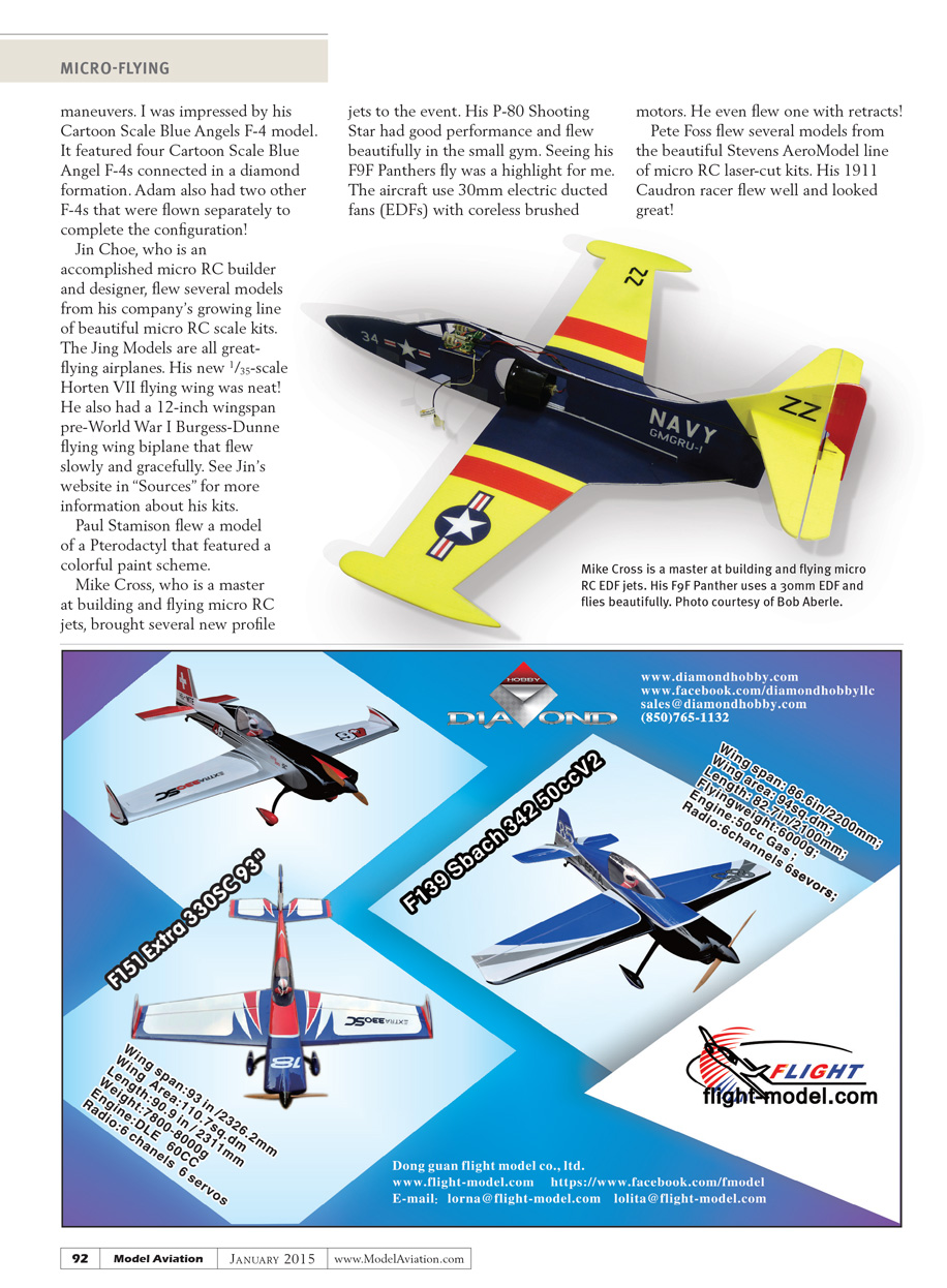 Jin Choe, who is an accomplished micro RC builder and designer, flew several models from his company’s growing line of beautiful micro RC scale kits. The Jing Models are all great-flying airplanes. His new 1/35-scale Horten VII flying wing was neat! He also had a 12-inch wingspan pre-World War I Burgess-Dunne flying wing biplane that flew slowly and gracefully. See Jin’s website in “Sources” for more information on his kits.