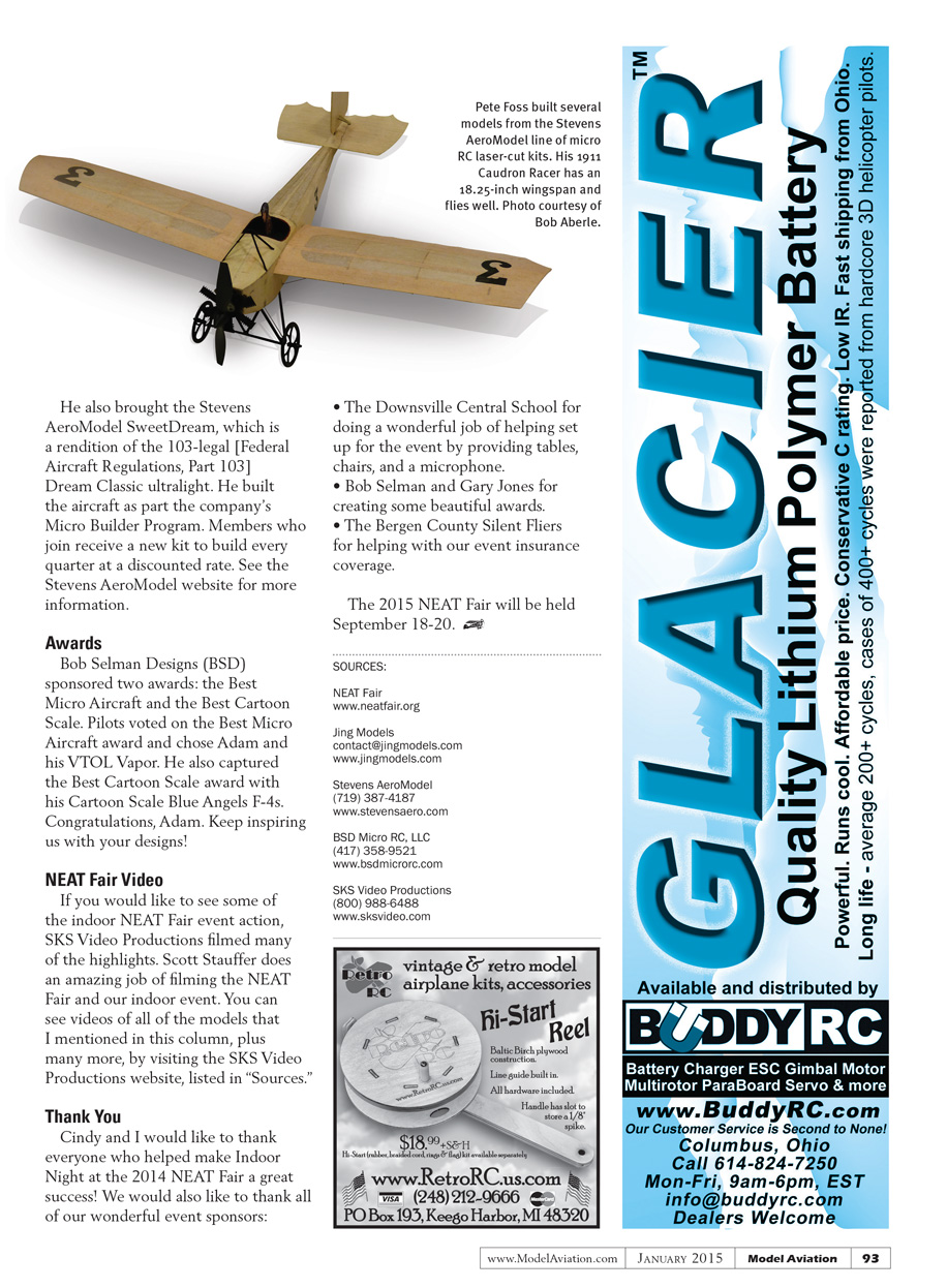 If you would like to see some of the indoor NEAT Fair event action, SKS Video Productions filmed many of the highlights. Scott Stauffer does an amazing job of filming the NEAT Fair and our indoor event. You can see videos of all of the models that I mentioned in this column, plus many more, by visiting the SKS Video Productions website, listed in “Sources.”