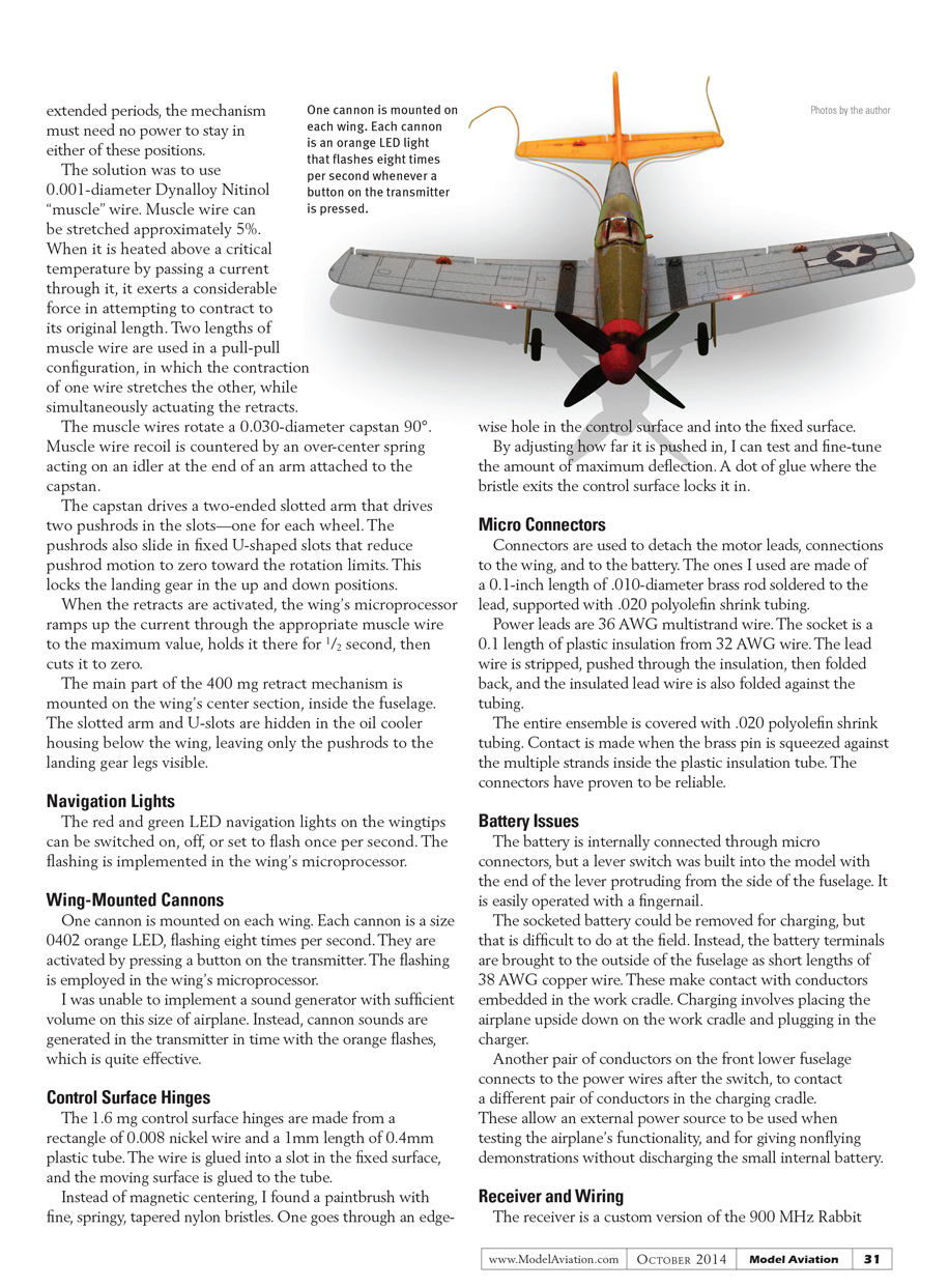 I would like to thank Robert Guillot for showing me how to make scale aircraft of this size. I also want to thank Matt Keennon for introducing me to the challenges of muscle wire, and for allowing me to use the gym in Simi Valley, California.