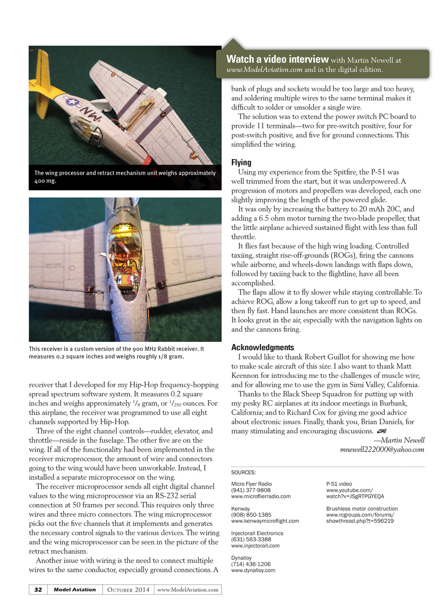 Thanks to the Black Sheep Squadron for putting up with my pesky RC airplanes at its indoor meetings in Burbank, California; and to Richard Cox for giving me good advice about electronic issues. Finally, thank you, Brian Daniels, for many stimulating and encouraging discussions.[dingbat]