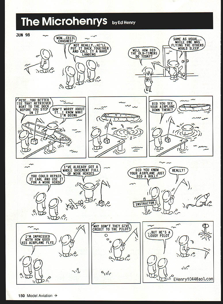 SAME AS USUAL. WHILE ONE WAS FLYING THE OTHERS WELL HOW DIDWOULD SLEEP THE OLD-TIMERS-v TODAY IVE ALREADY GOT Li DID YOU KNOW YOUR AIRPLANE JUST DID ROLL REALLY iNSTRUCT 0 IM IMPRESSED WITH HOW GOOD HIS AIRPLANE FLYS 150 Model Aviation 98 0 DID YOU SEE YOUR AIRPLANE DOWN THERE 7K WHY DONT THEY GIVE CREDIT TO THE PILOT 0 0 0 HES LOUSY PILOT N -0EHenrylO44@aolcom