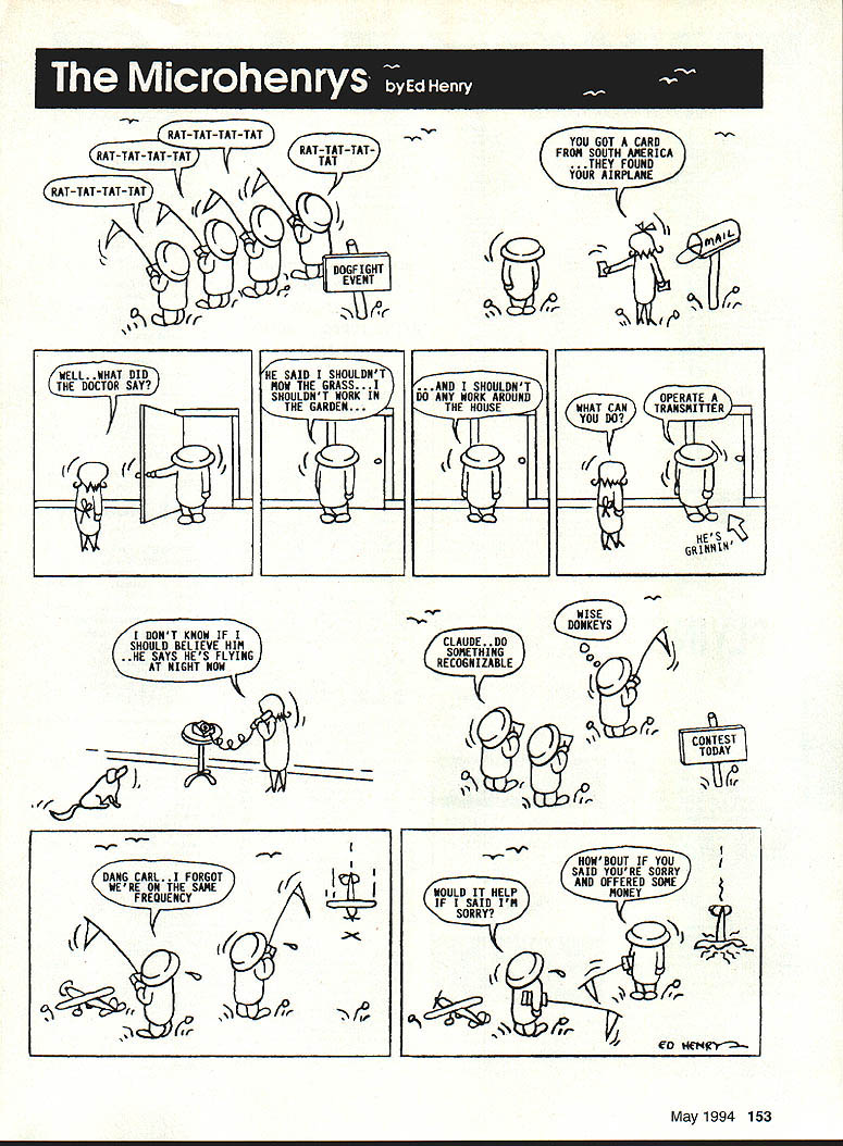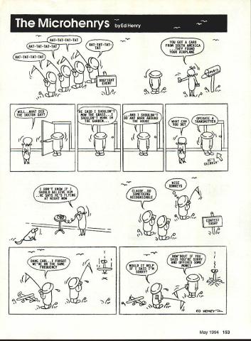 RAT-TAT-TAT-TAT RAT-TAT-TATRAT-TAT-TAT-TAT RAT-TAT-TAT-TAT EVENT DOGF IGHT -V O/ YOU GOT CARD FROM SOUTH AMERICA THEY FOUND YOUR AIRPLANE 1 V. 1j WELL WHAT DID THE DOCTOR SAY HE SAID SHOU MOW THE 6RASS. HOULDNT WORK IN THE GARDEN SHOULDNT DO ANY WORK AROUND THE HOUSE 0 DONT KNOW IF SHOULD BELIEVE HIM HE SAYS HES FLYING AT NIGHT NOW #7 CLAUDE DO SOMETHING RECOGNIZABLE KONKEYS/ o o 0jjf// 4p r DANG CARL 1 FORGOT WERE ON THE SAME FREQUENCY 6 WOULD IT HELP IF SAID IM SORRY HOWBOUT IF YOU SAID YOURE SORRY AND OFFERED SOME MONEY CO Et4--- May1994 153 WHAT CAN TRANSMITTER CONTEST TODAY