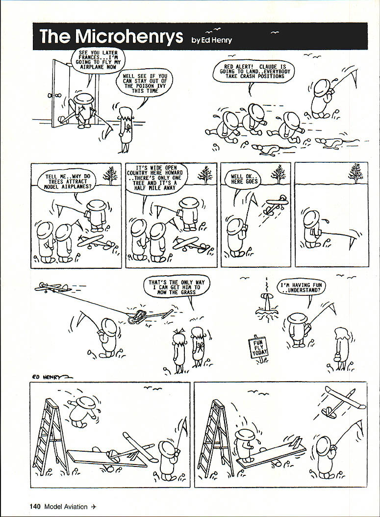 Li U -LY NY NOW T[7ThE STAY OUT OF POISON IVY THIS TINE ALERT DE IS GOING TO LAND. EVERYBODY TAKE CRASH POSITIONS ELL ME WHY DO TREES ATTRACT MODEL AIRPLANES ITS WIDE OPEN COUNTRY HERE HOWARD THERES ONLY ONE TREE AND ITS HALF NILE AWAY C WELL OK._ HERE GOES 777 Xl THATS THE ONLY WAY CAN GET HIM TO NOW THE GRASS v yr IM HAVING FUN UNDERSTAND ~ ED 4ENy ~1 / / / 140 Model Aviation t1 - f