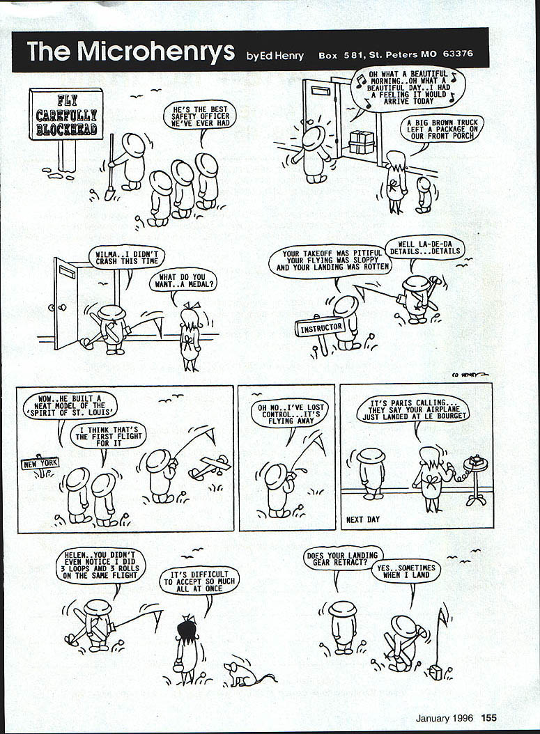 IlCAlVULLI cALJ WILMA 1 DIDNT S TIME WHAT DO YOU Nzzf~SHTHiiiD WANT. MEDAL WOW HE BUILT NEAT MODEL OF THE SPIRIT OF ST LOUIS THINK THATS THE FIRST FLIGHT FOR IT LEN YOU DIDNT EVEN NOTICE DID 3 LOOPS AND 3 ROLLS ON THE SANE FLIGHT ITS DIFFICULT TO ACCEPT SO MUCH ALL AT ONCE BIG BROWN TRUCK LEFT PACKAGE ON OUR FRONT PORC iwsr ED i4ft4f~OH NO IVE LOST CONTROL. ITS FLYING AWAY K -If DOES YOUR LANDING GEAR RETRACT YES SONETIMES WHEN LAND January1996 155 HES THE BEST SAFETY OFFICER WEVE EVER HAD ITS PARIS CALLING. THEY SAY YOUR AIRPLANE JUST LANDED AT LE BOURGET NEXT DAY
