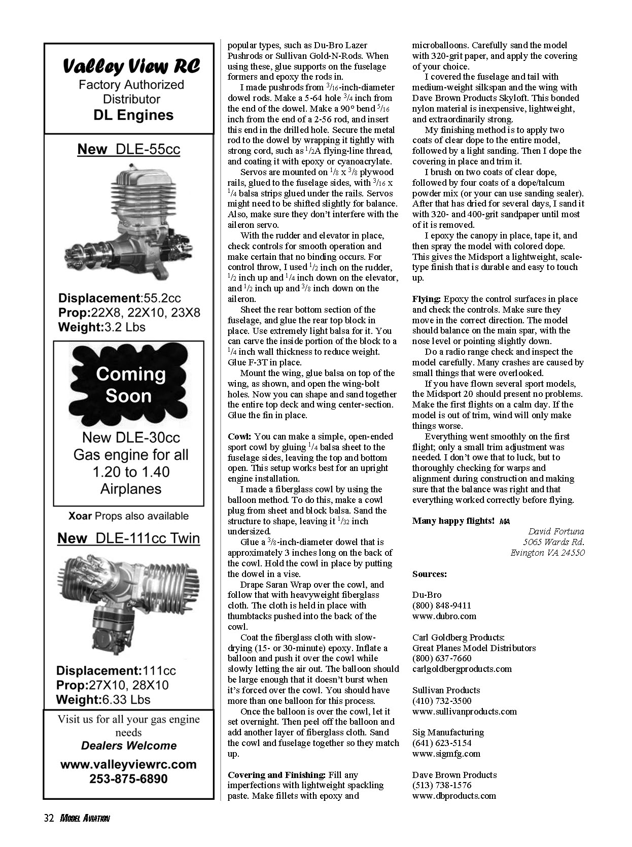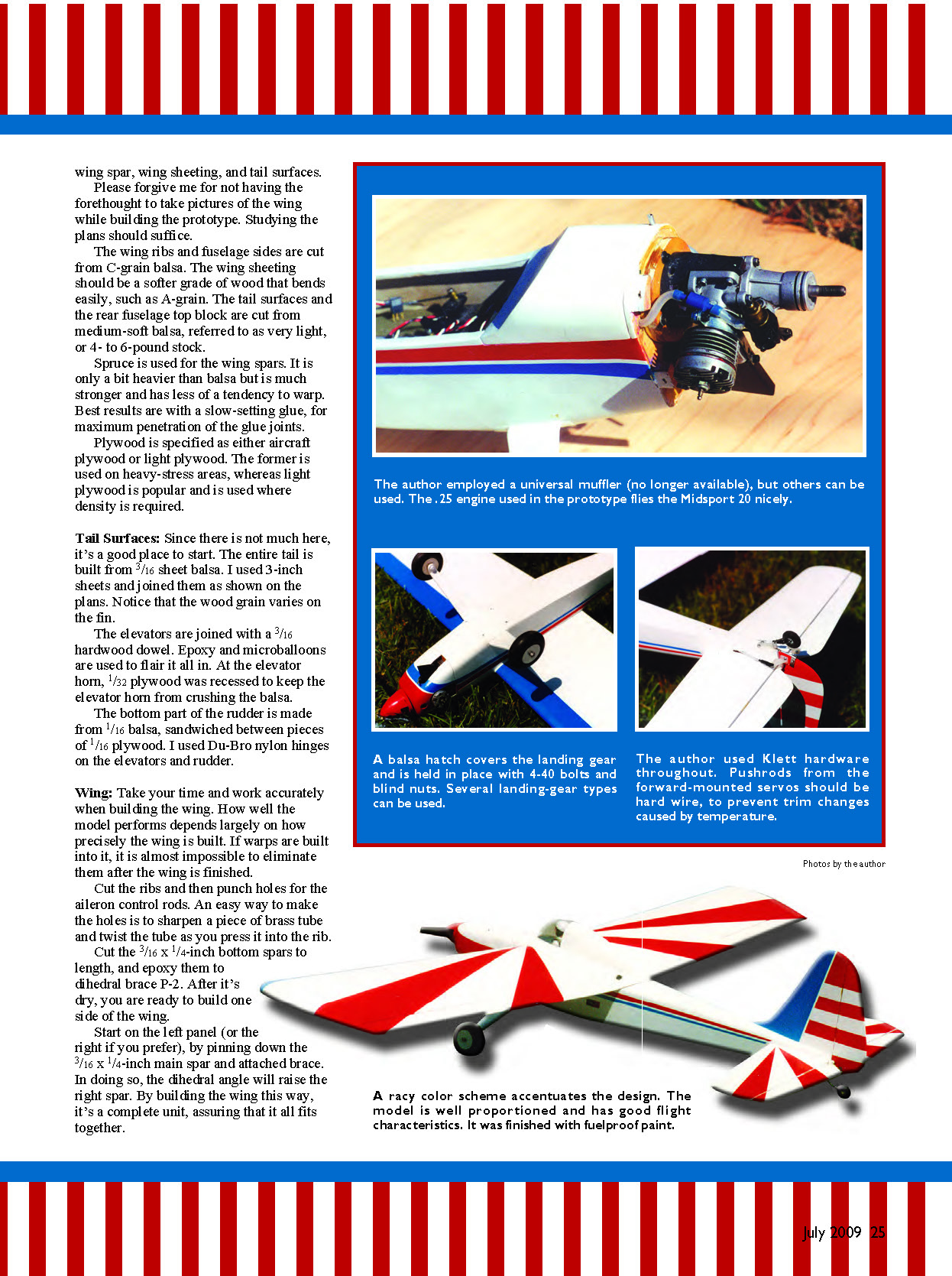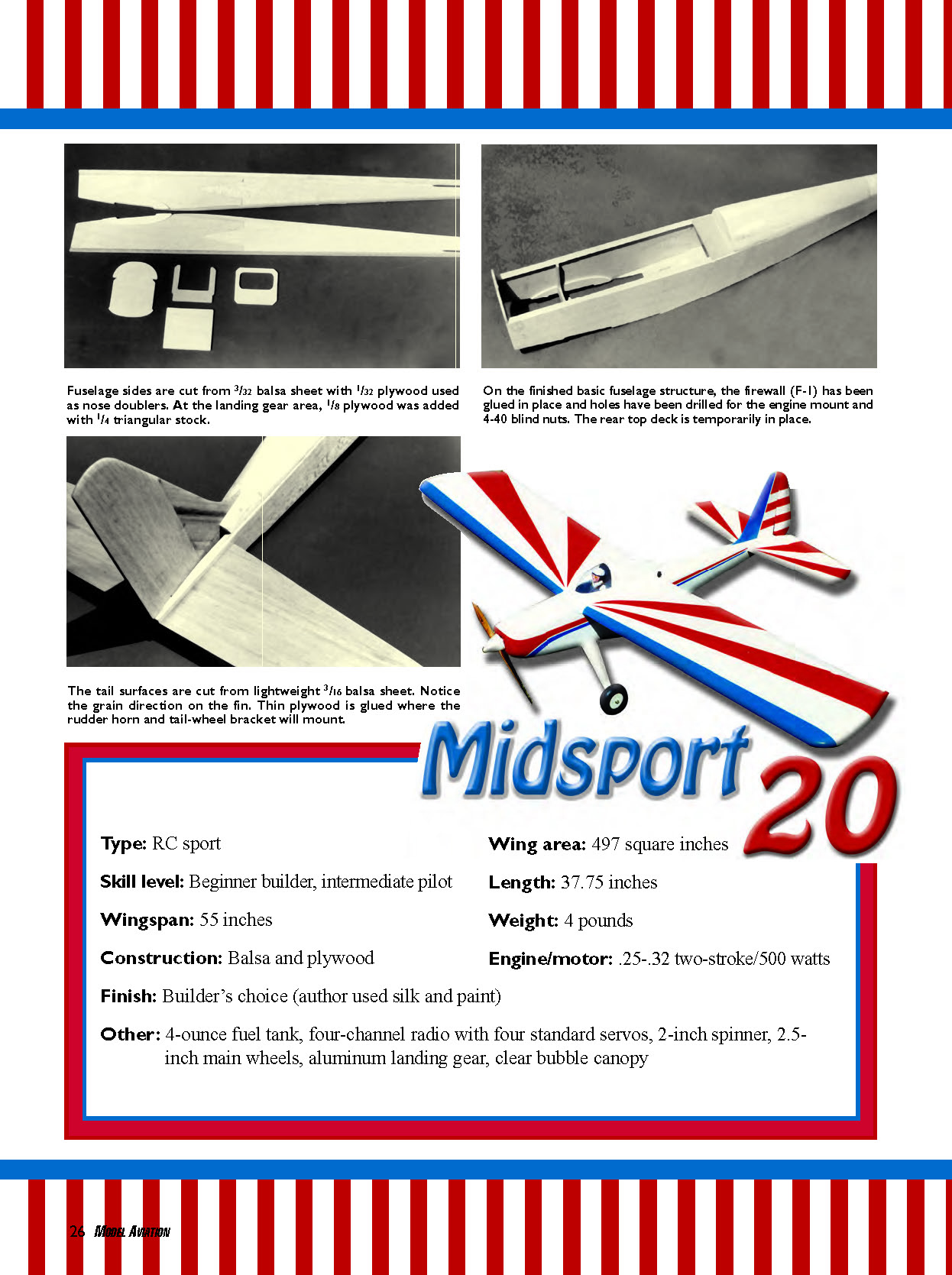 used. The .25 engine used in the prototype flies the Midsport 20 nicely.