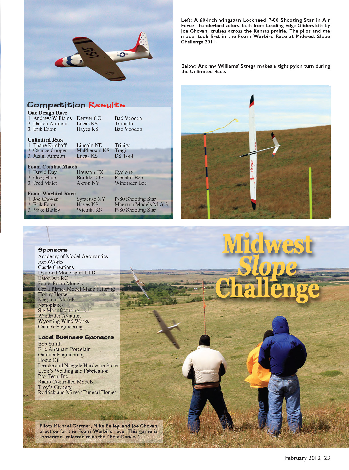 All four Midwest Slope Challenge events, including the Foam Combat match, were flown in Jim Lawson’s pasture. In Foam
