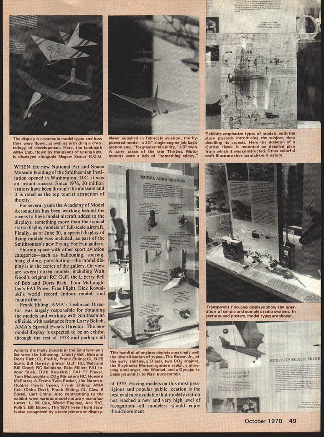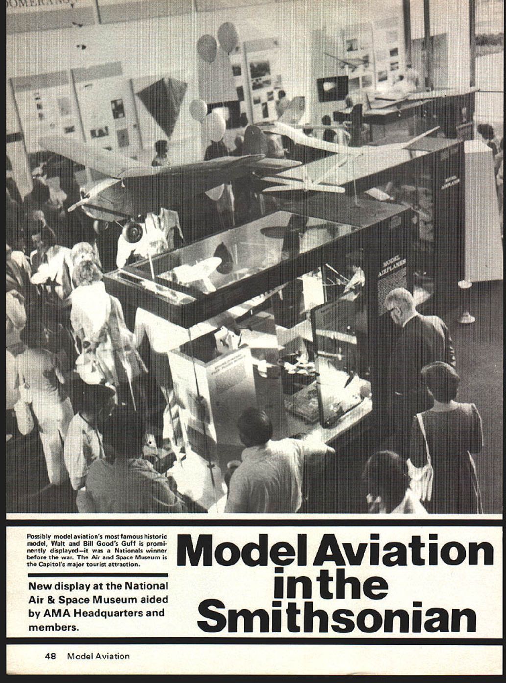 h Possibly model aviations famous historic model Walt Bill Goods Guff promi nently displayedit Nationals winner before war Air Space Museum Capitols major tourist attraction New display National Air & Space Museum aided AMA Headquarters members 48 Model Aviation r U Model Aviation inthe Smithsonian NO OCR TEXT NO OCR TEXT