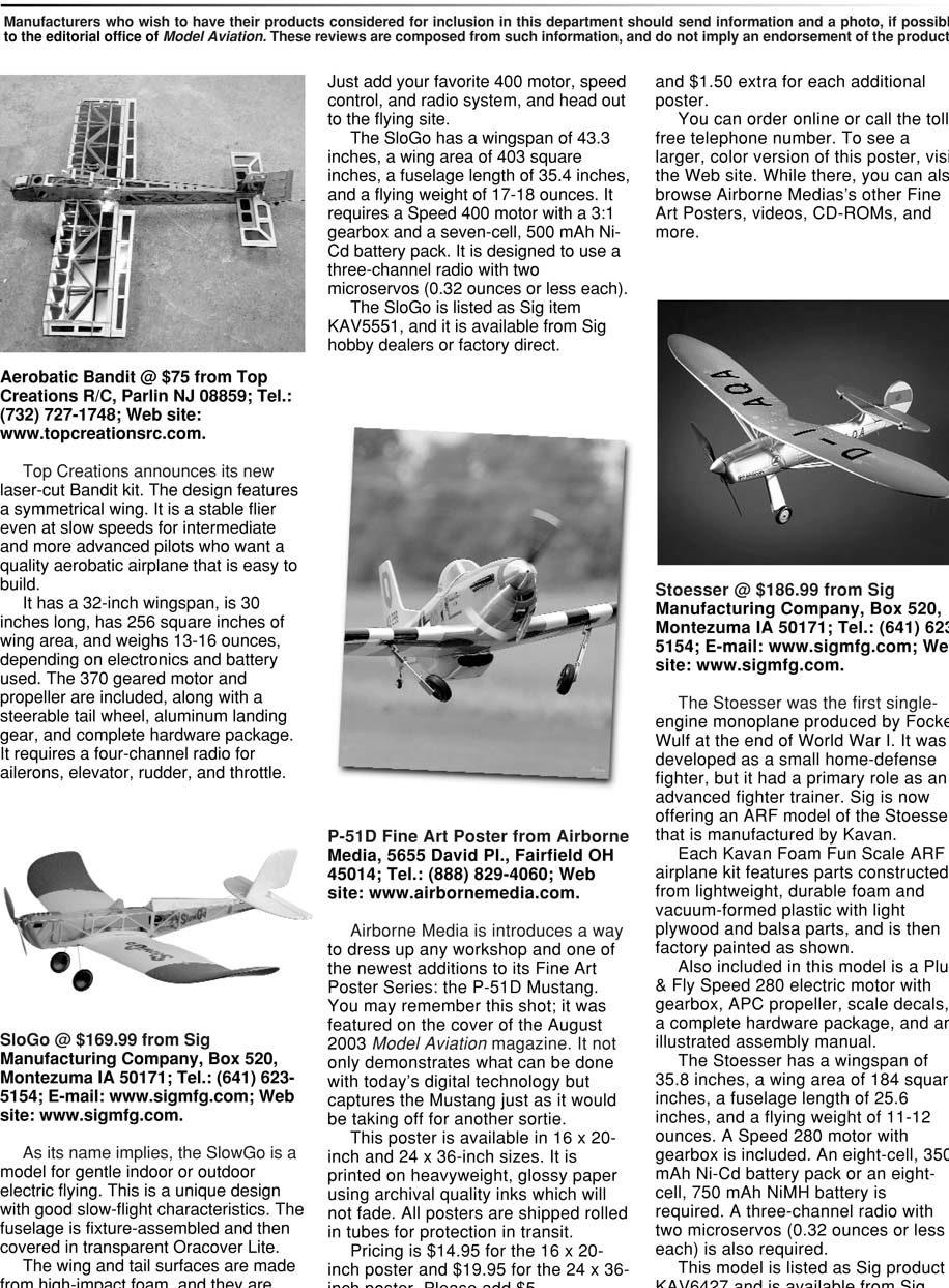 to the editorial office of Model Aviation. These reviews are composed from such information, and do not imply an endorsement of the products.