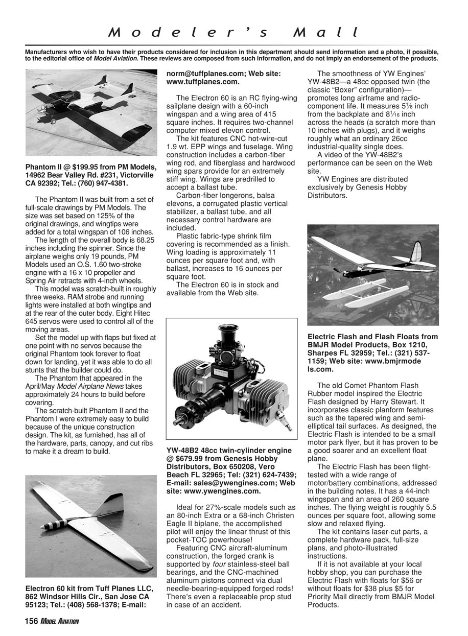 to the editorial office of Model Aviation. These reviews are composed from such information, and do not imply an endorsement of the products.