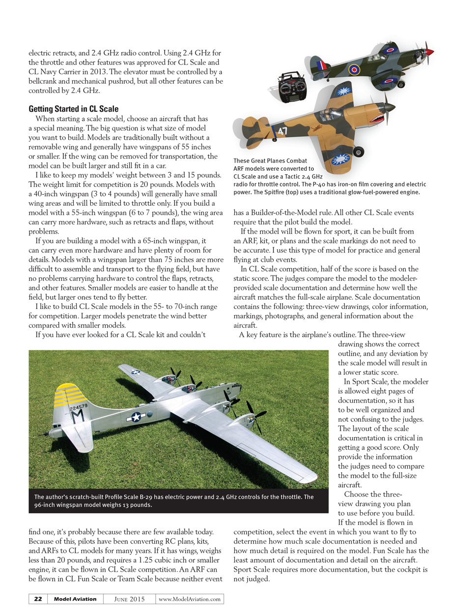 I like to build CL Scale models in the 55- to 70-inch range for competition. Larger models penetrate the wind better compared with smaller models.