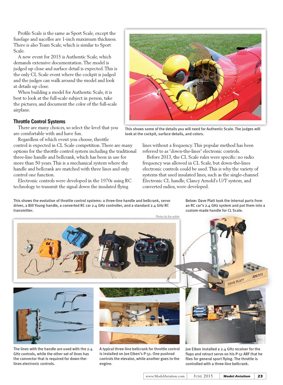 Regardless of which event you choose, throttle control is expected in CL Scale competition. There are many options for the throttle control system including the traditional three-line handle and bellcrank, which has been in use for more than 50 years. This is a mechanical system where the handle and bellcrank are matched with three lines and only control one function.