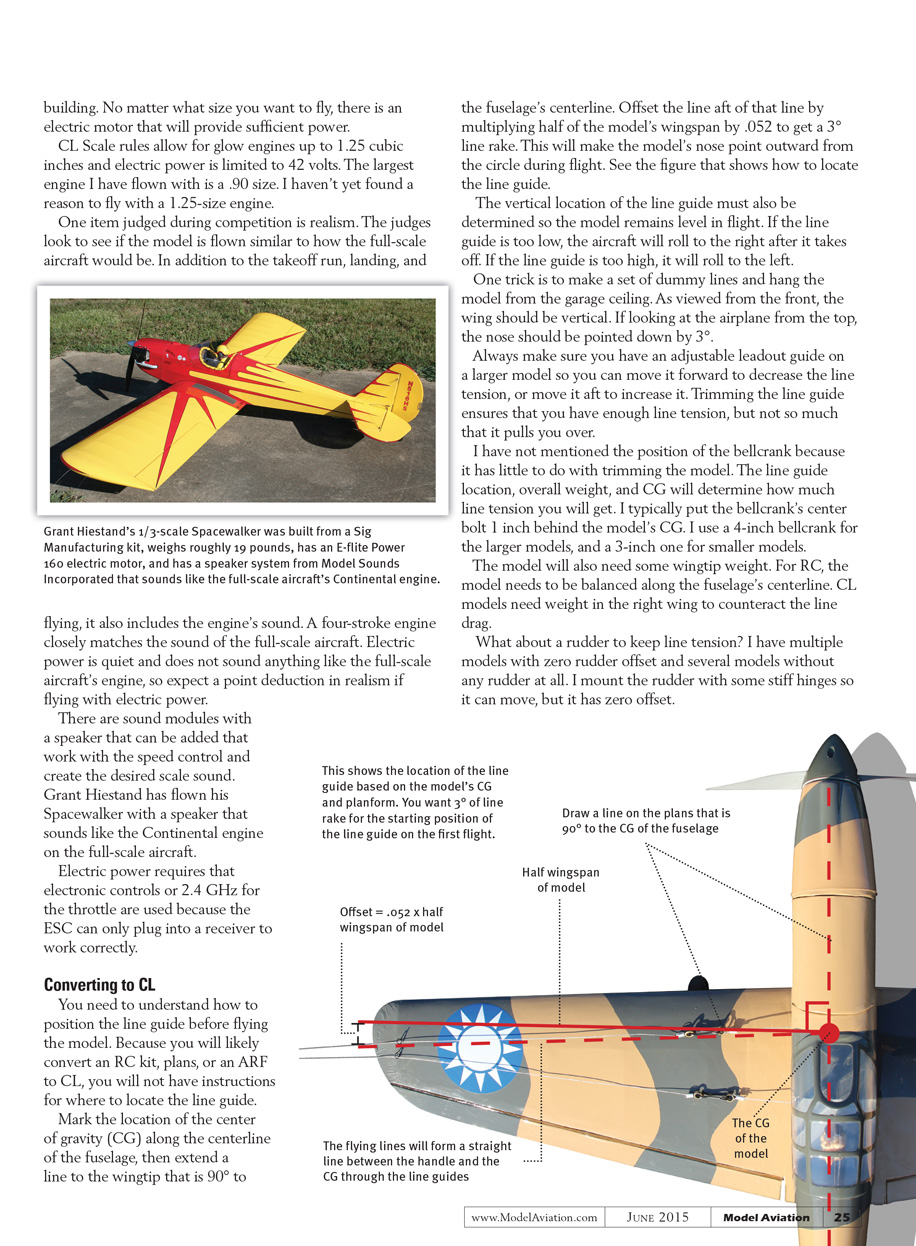 You need to understand how to position the line guide before flying the model. Because you will likely convert an RC kit, plans, or an ARF to CL, you will not have instructions for where to locate the line guide.