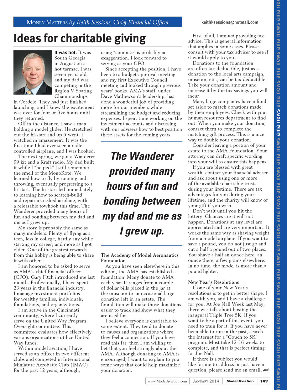 As you have seen elsewhere in this edition, the AMA has established a foundation. Many donate to AMA each year. It ranges from a couple of dollar bills placed in the jar at the museum to an occasional large donation left in an estate. The foundation will make those donations easier to track and show what they are used for.
