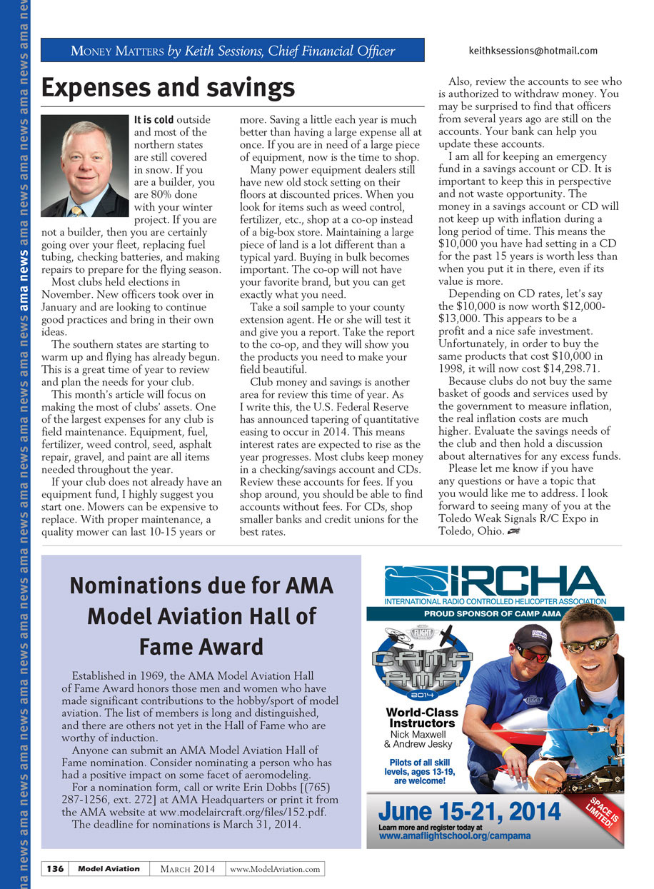 Most clubs held elections in November. New officers took over in January and are looking to continue good practices and bring in their own ideas. The southern states are starting to warm back up and flying has already begun. This is a great time of year to review and plan the needs for your club. This month’s article will focus on making the most of clubs assets.