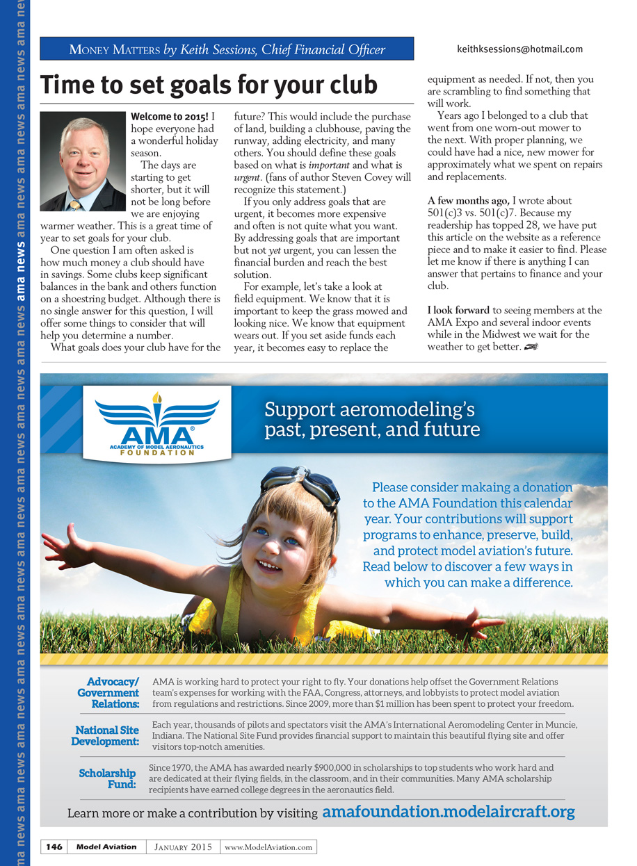 I look forward to seeing members at the AMA Expo and several indoor events while we wait for the weather to get better here in the Midwest.[dingbat]