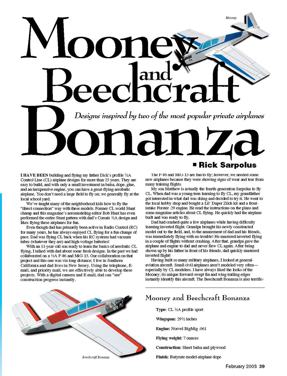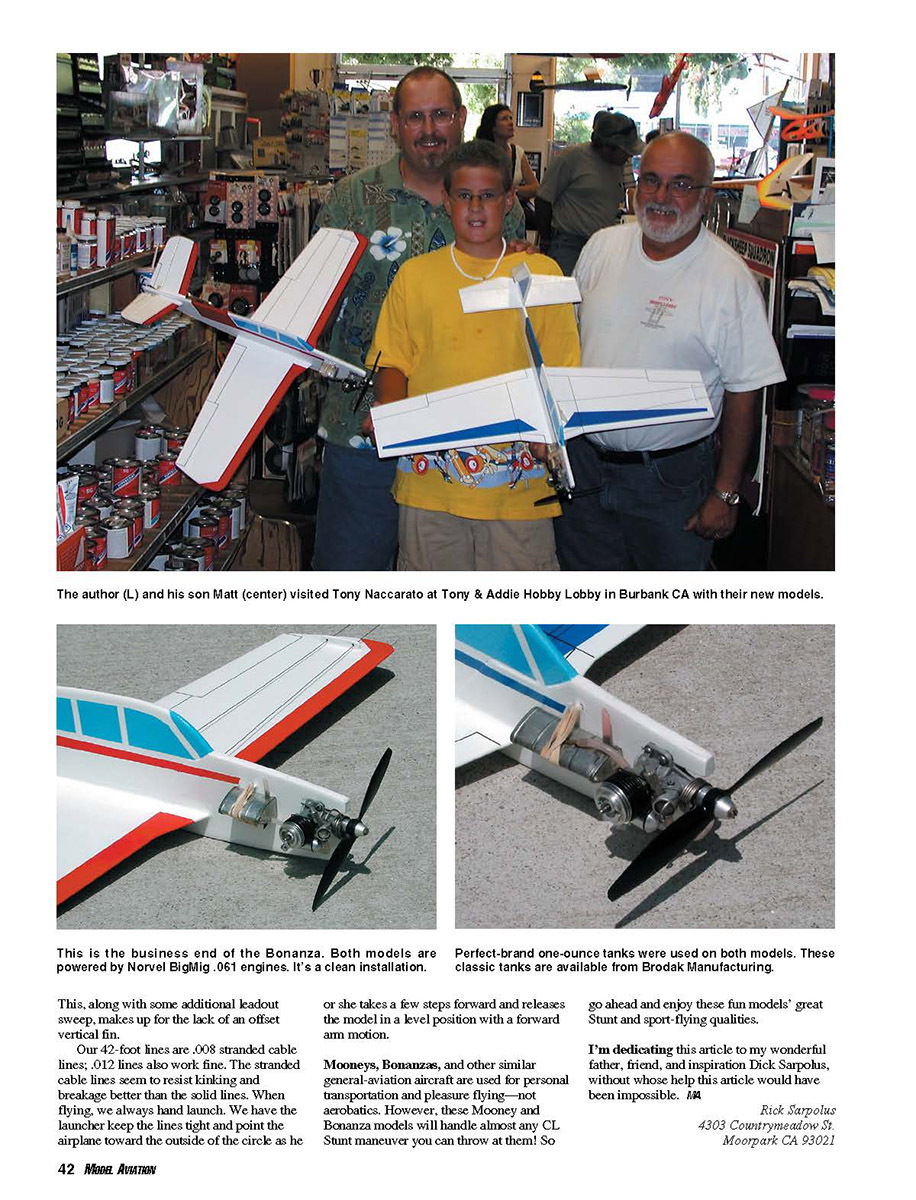 Control Line (CL) airplane designs for more than 25 years. They are