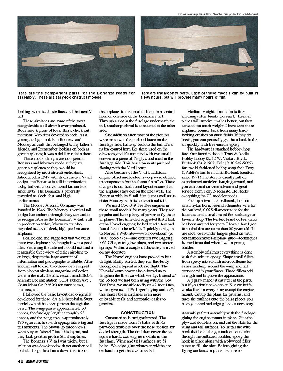 flying circle. For the Bonanza, glue the tail surfaces together at the