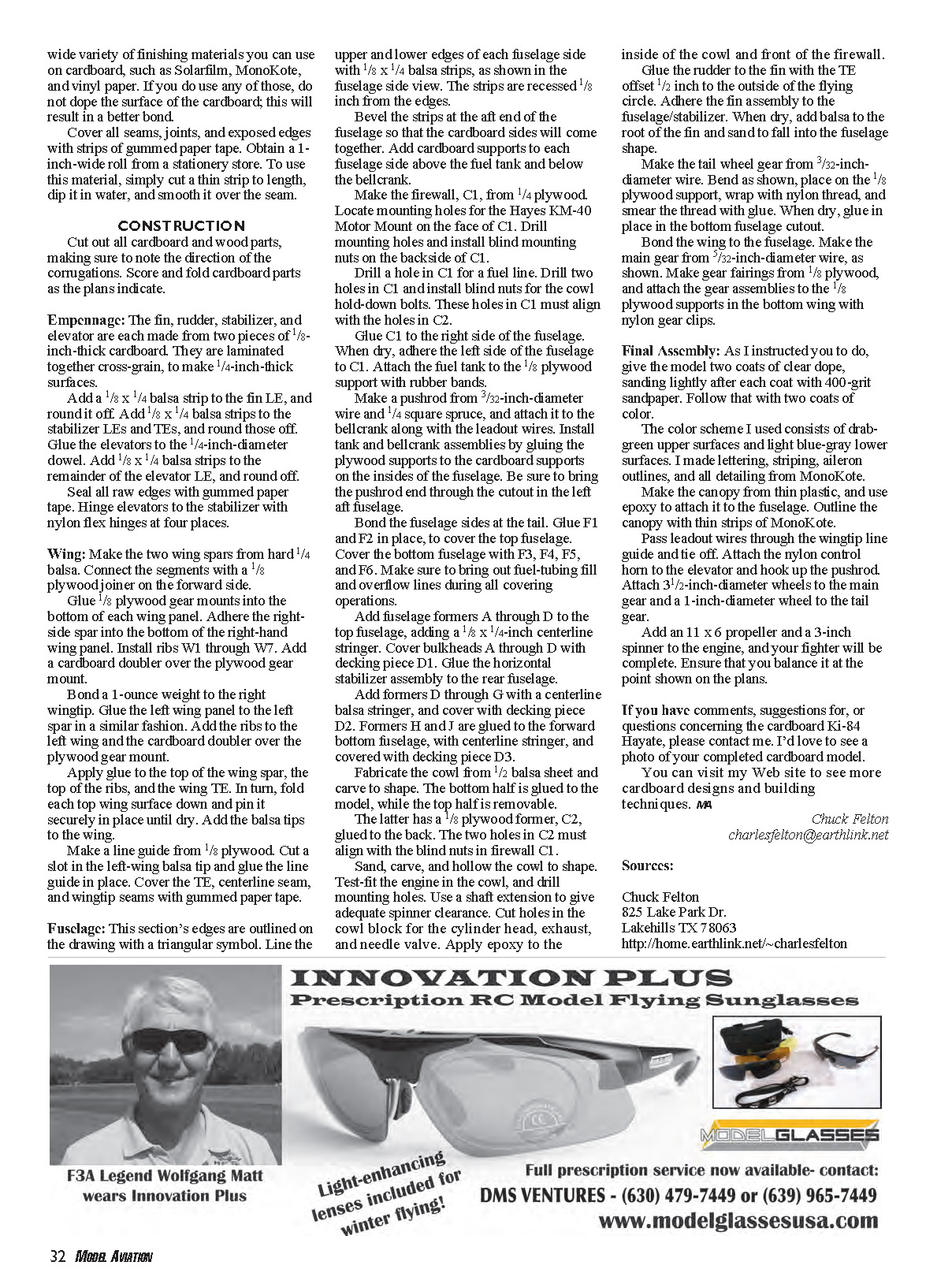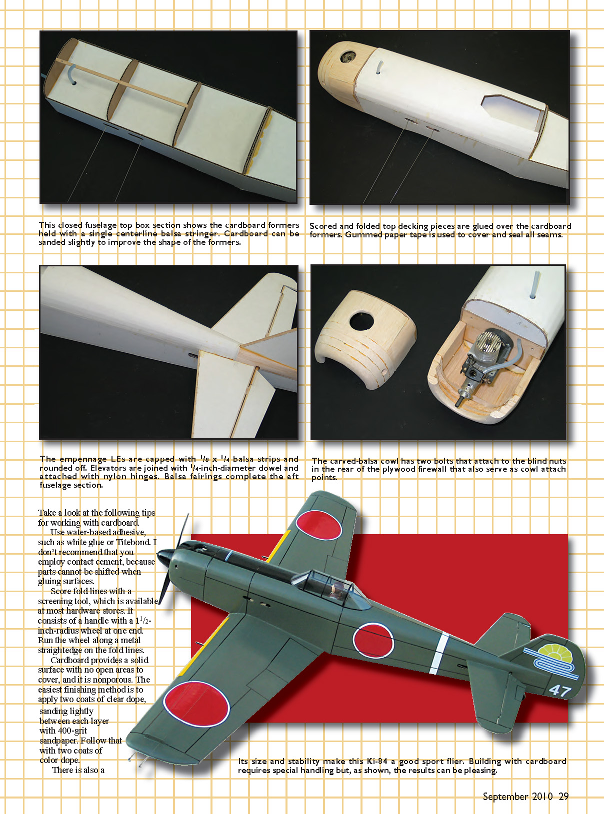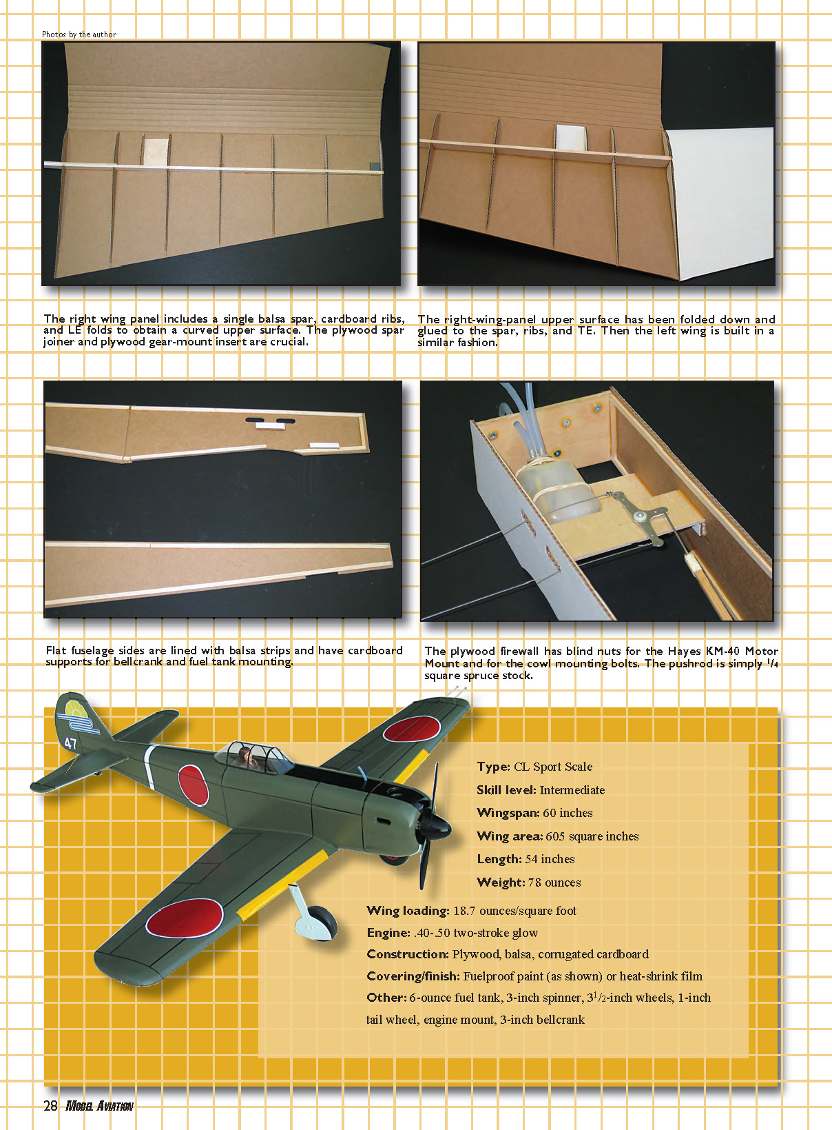 single spar. The tail surfaces and fuselage are primarily cardboard, with