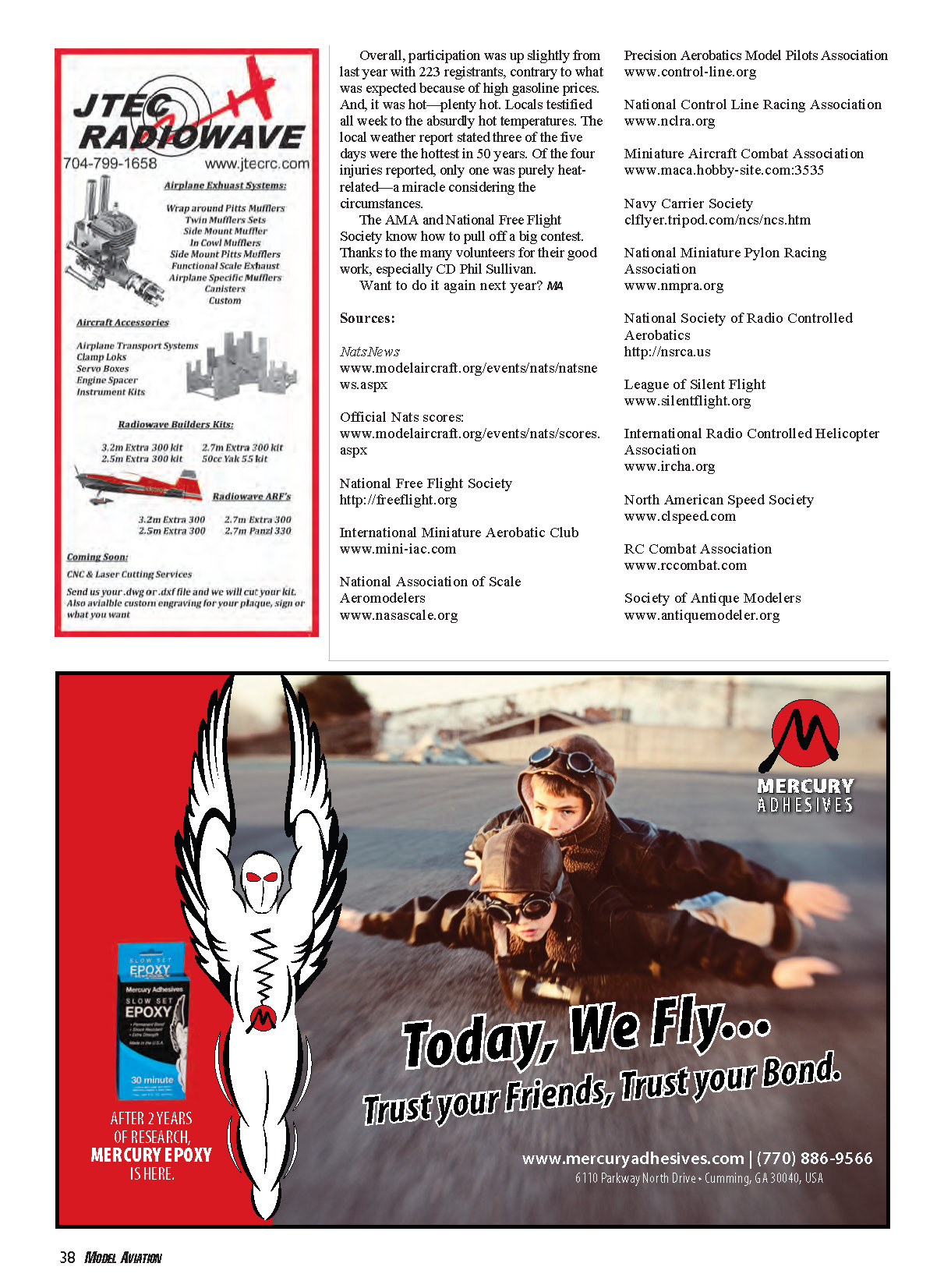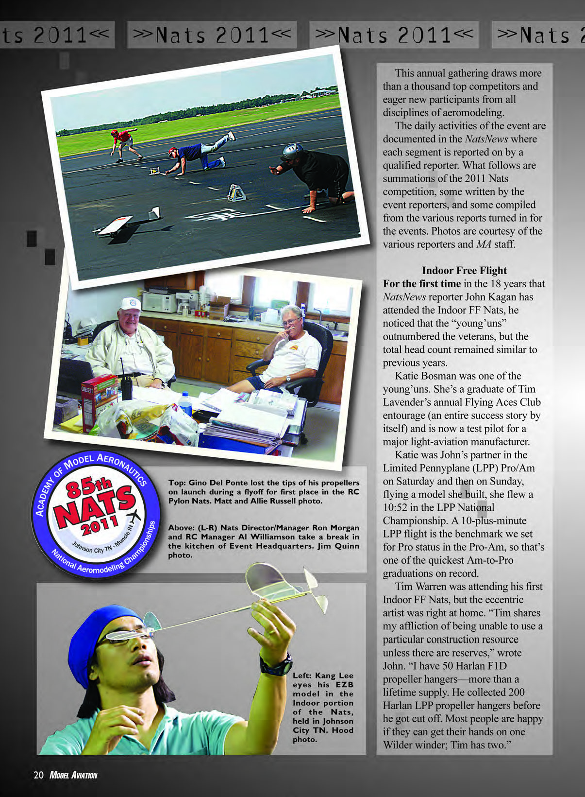 The first National Aeromodeling Championships, or Nats as it is commonly called, was held in 1923 in Saint Louis, Missouri. Since then, the Nats has traveled to several different locations, many of which were Naval Air Stations. In 1996 the Outdoor Nats found a home at AMA's International Aeromodeling Center in Muncie, Indiana, and the Indoor events landed at the Mini-Dome in Johnson City, Tennessee.