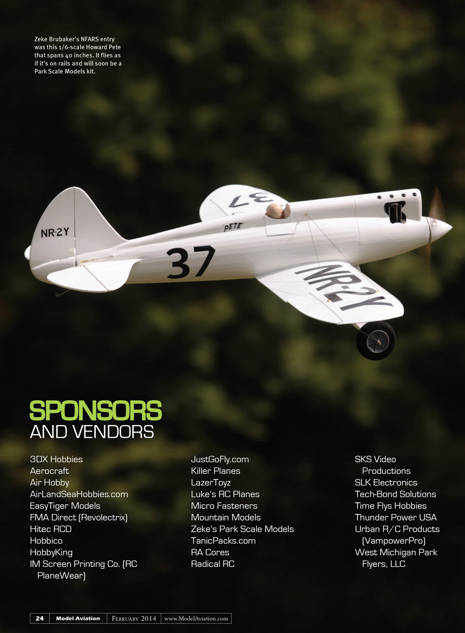 The entire NFARS team is grateful for the generous support of Hitec USA and Thunder Power RC. Similarly, IM Screen Printing and Tony Albence teamed up to create our fantastic T-shirts. Thank you all!