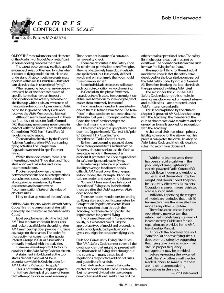 of the Academy of Model Aeronautics’ part in