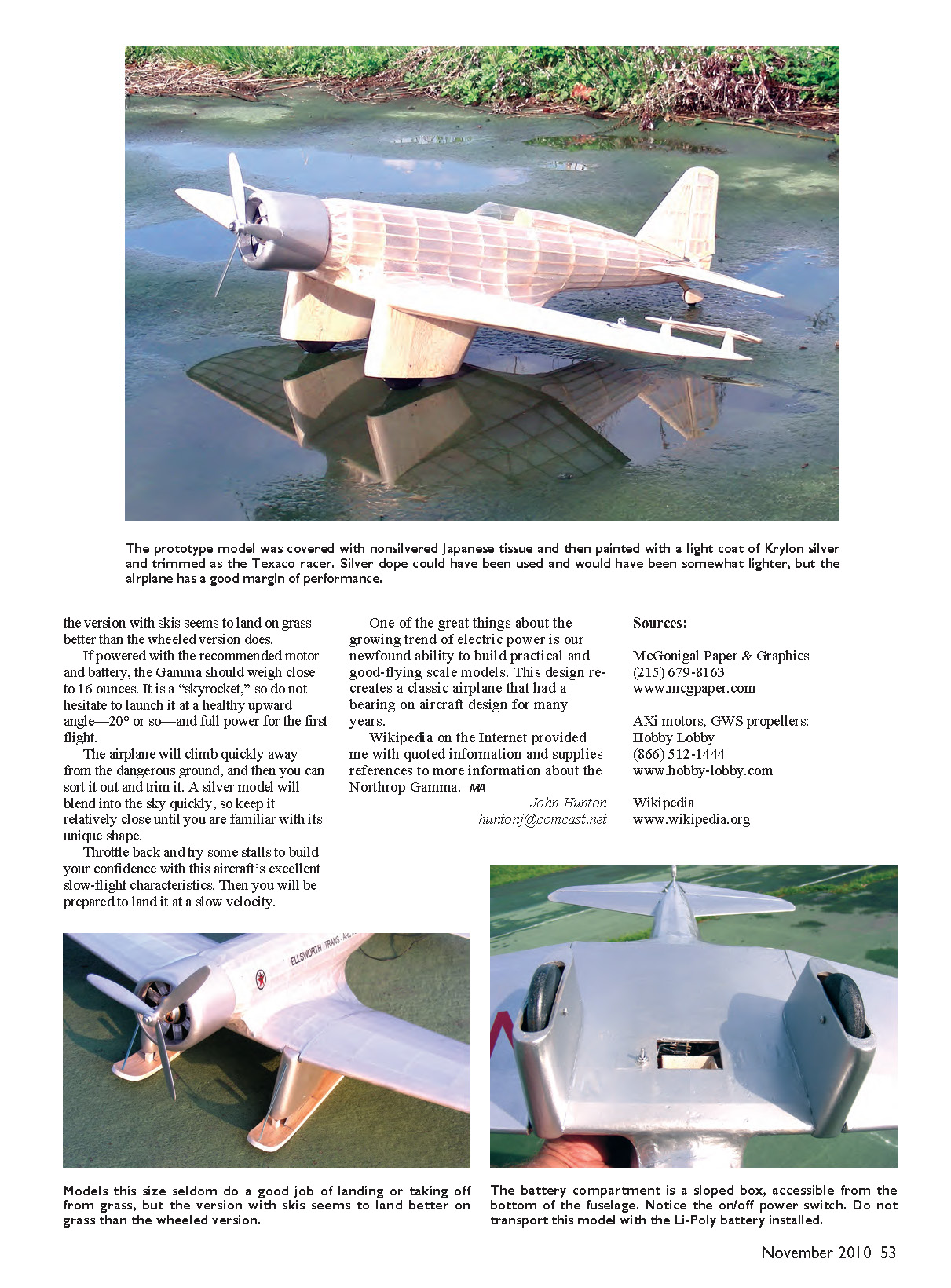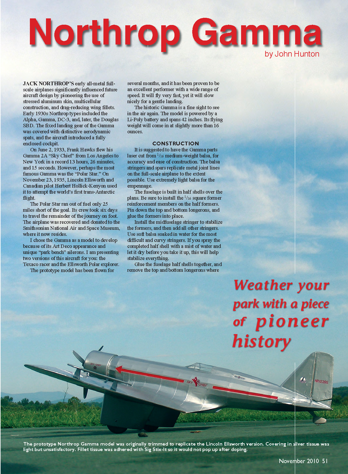 The prototype Northrop Gamma model was originally trimmed to replicate the Lincoln Ellsworth version. Covering in silver tissue was