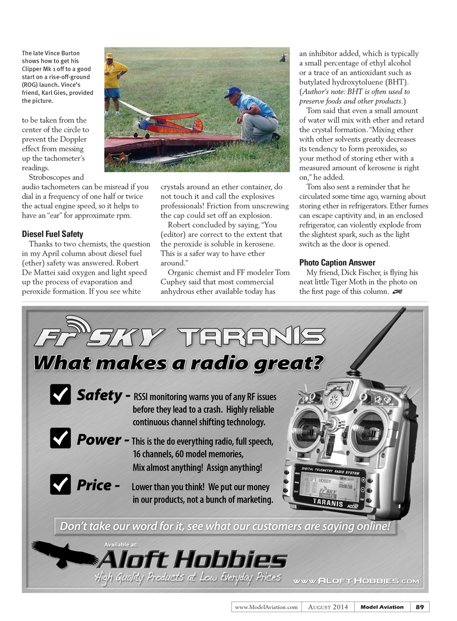Organic chemist and FF modeler Tom Cuphey says most commercial anhydrous ether available today has an inhibitor added, which is typically a small percentage of ethyl alcohol or a trace of an antioxidant such as butylated hydroxytoluene (BHT). (Author’s note: BHT is often used to preserve foods and other products.)