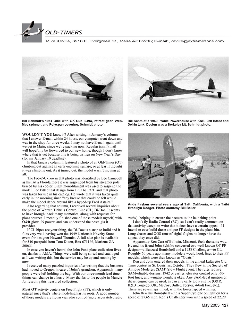 Bill Schmidt’s 1951 Ollie with OK Cub .049X, retract gear, Wen-