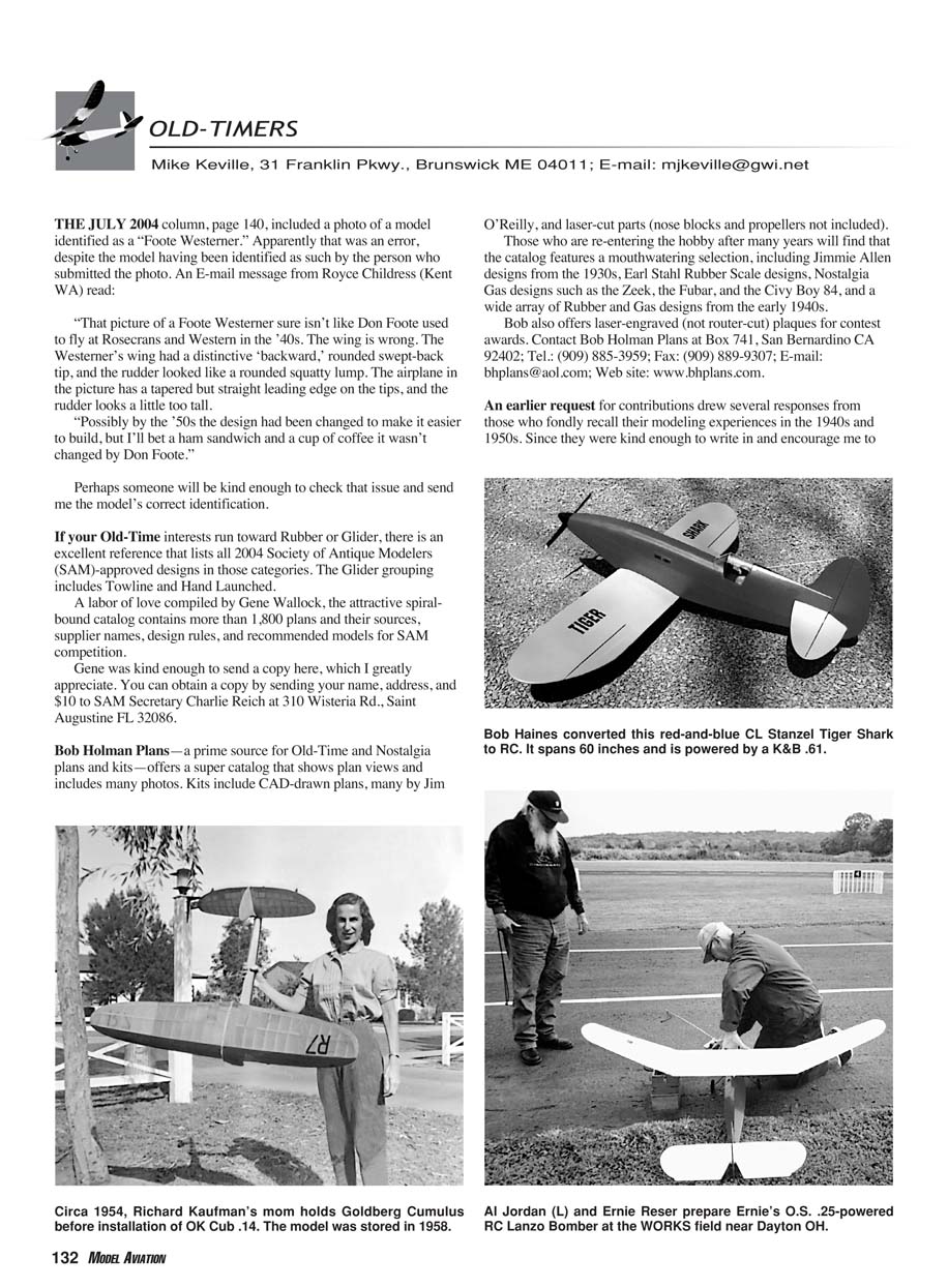 Model Aviation is the Old-Timers column.”