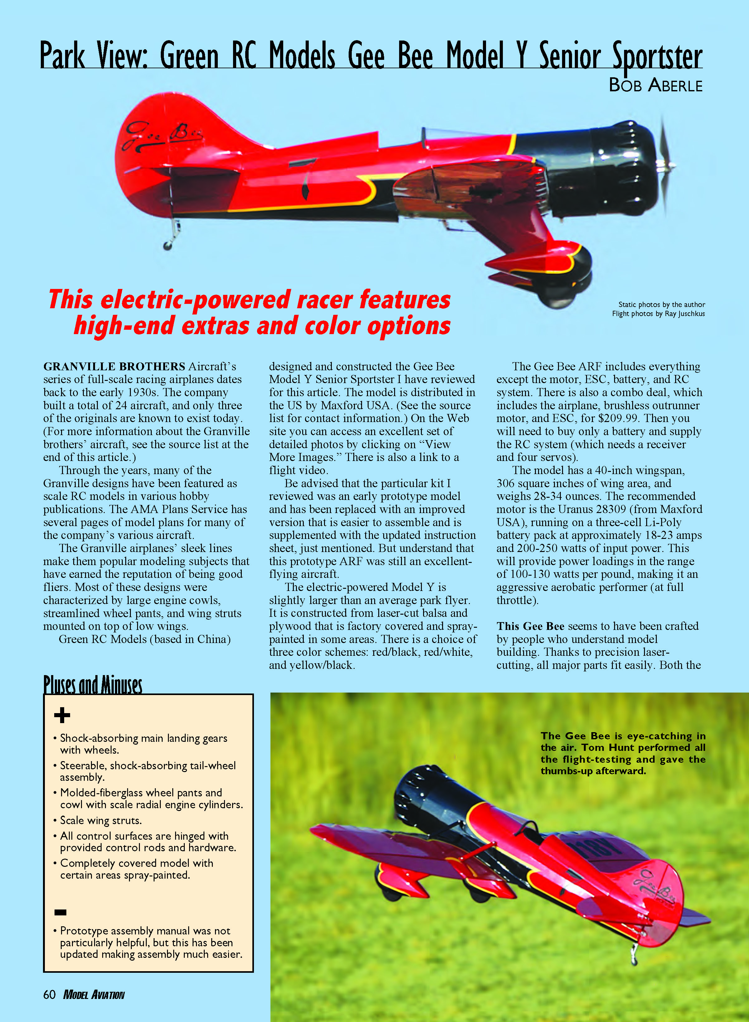 Flight photos by Ray Juschkus This electric-powered racer features