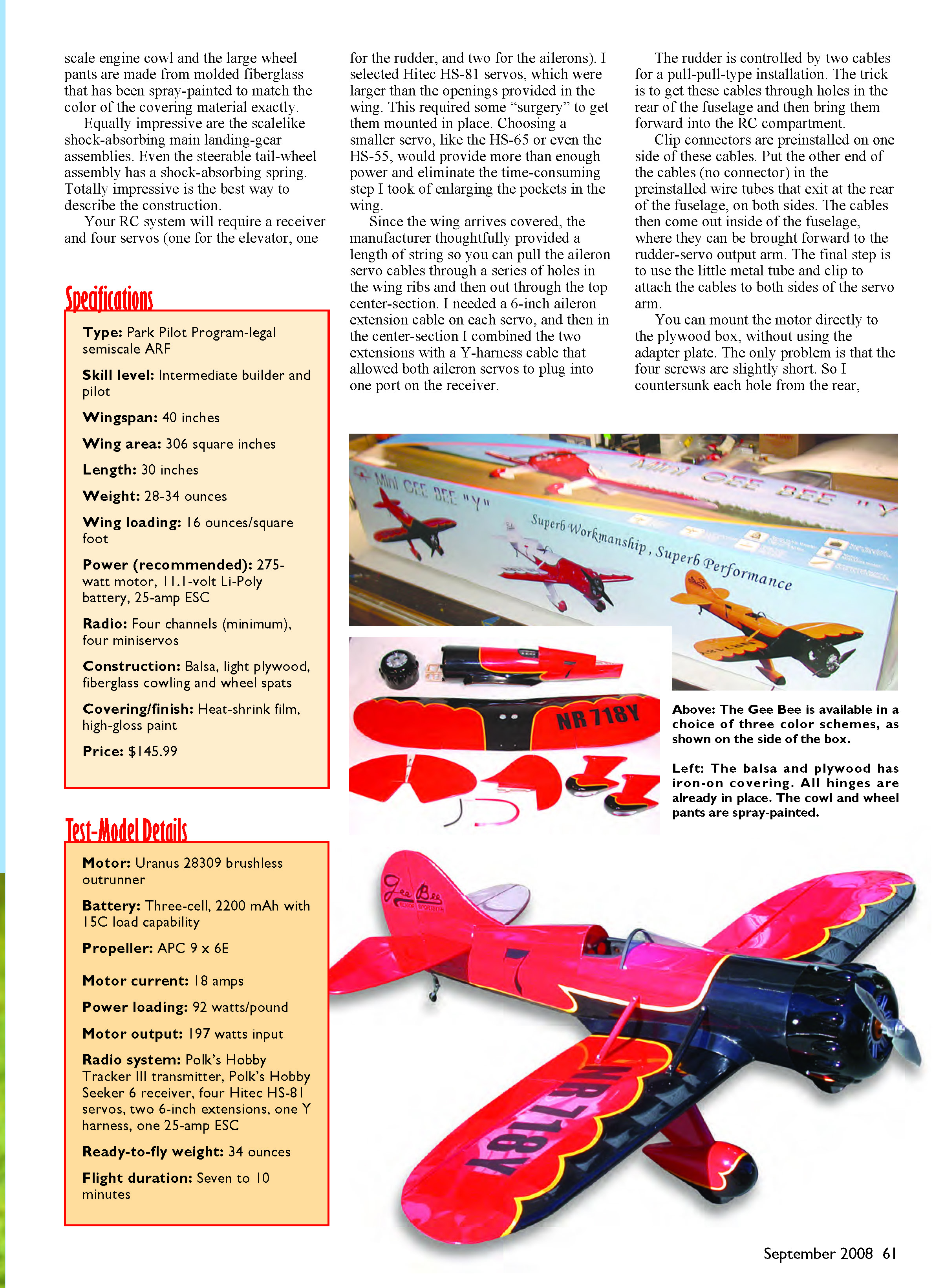 The Gee Bee ARF includes everything